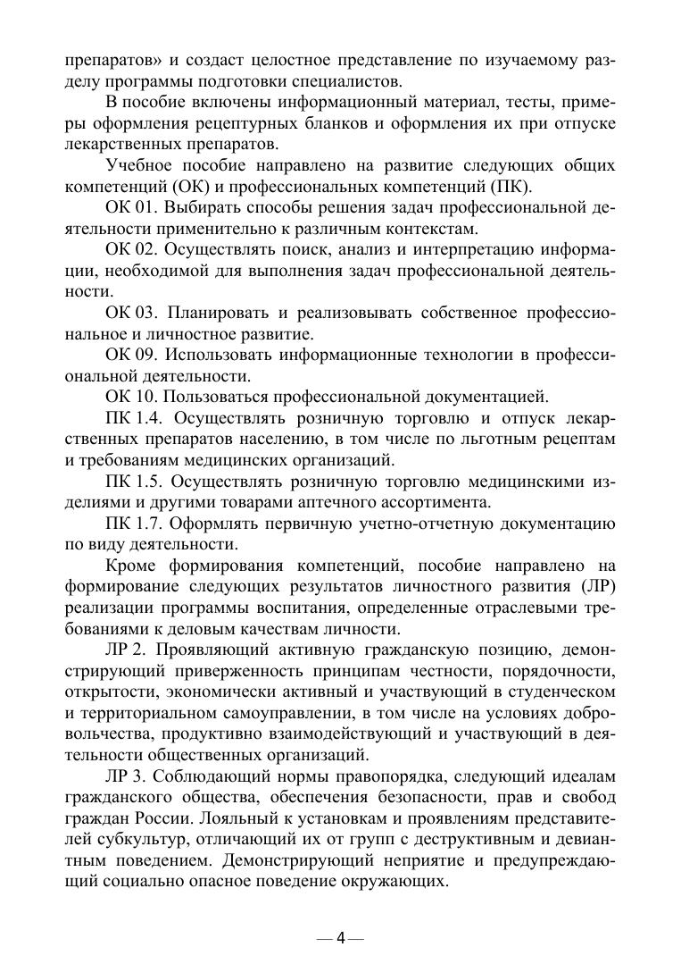 Пособие содержит теоретический материал и информационный справочный материал, соответствующие современным научным представлениям, контрольные задания. Соответствует современным требованиям Федерального государственного образовательного стандарта среднего профессионального образования и профессиональным квалификационным требованиям. Учебное пособие предназначено для самоподготовки обучающихся к практическим занятиям по профессиональному модулю ПМ.01 и слушателей отделения дополнительного образования по специальности «Фармация».