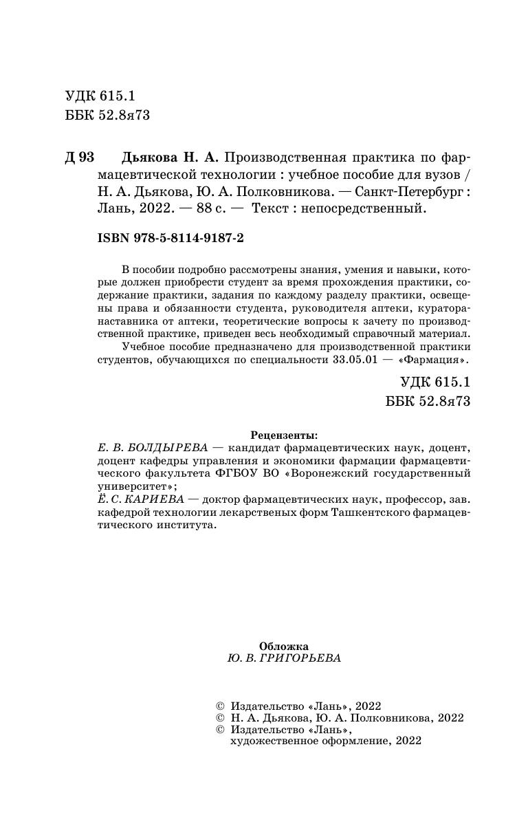 В пособии подробно рассмотрены знания, умения и навыки, которые должен приобрести студент за время прохождения практики, содержание практики, задания по каждому разделу практики, освещены права и обязанности студента, руководителя аптеки, куратора-наставника от аптеки, теоретические вопросы к зачету по производственной практике, приведен весь необходимый справочный материал. Учебное пособие предназначено для производственной практики студентов, обучающихся по специальности 33.05.01 — «Фармация».