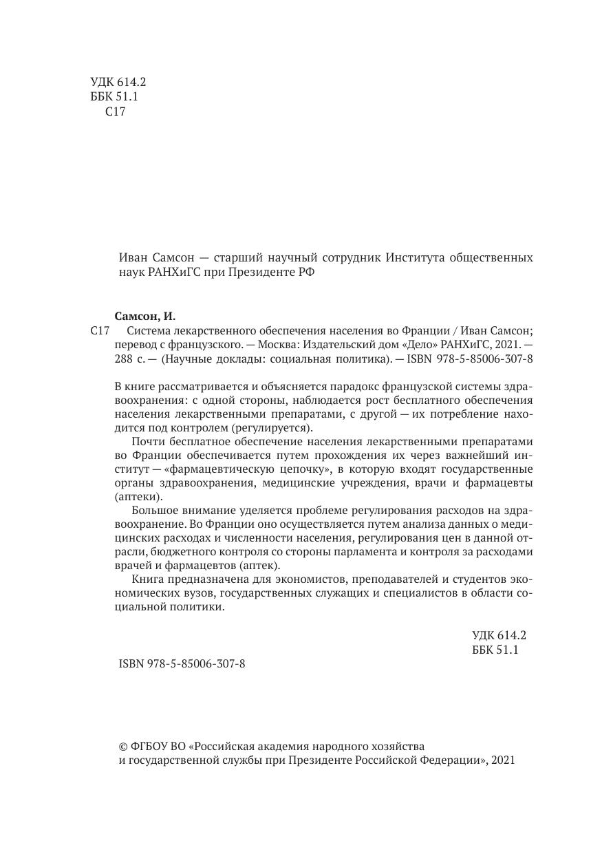 В книге рассматривается и объясняется парадокс французской системы здравоохранения: с одной стороны, наблюдается рост бесплатного обеспечения населения лекарственными препаратами, с другой — их потребление находится под контролем (регулируется).