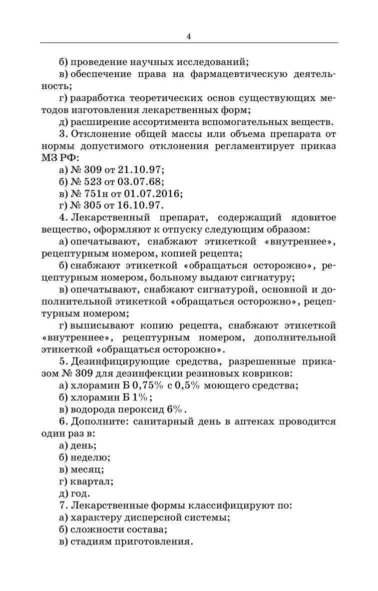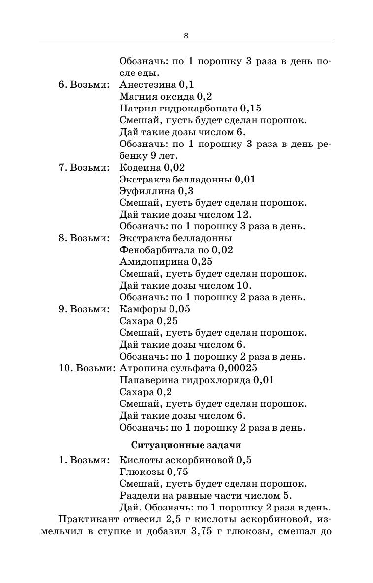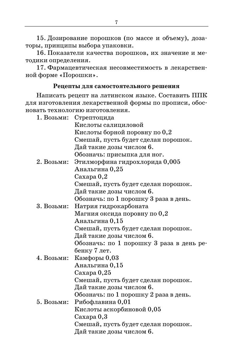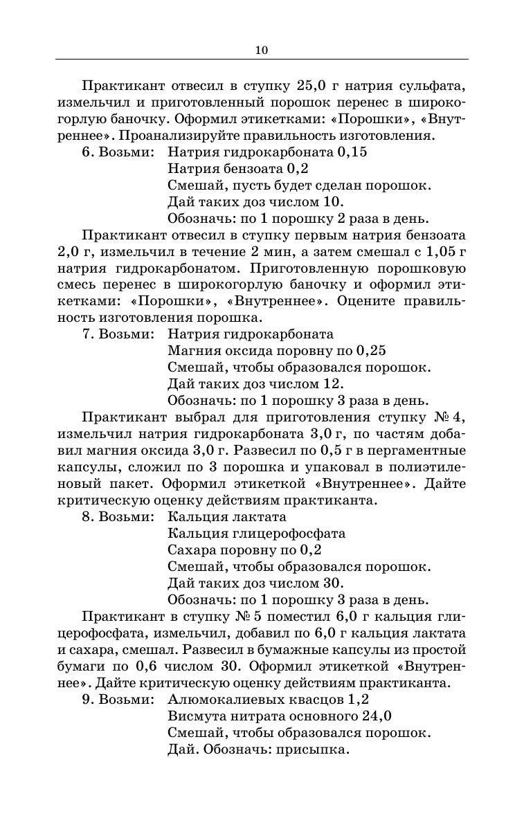 В пособии представлены вопросы для теоретической проработки изучаемых тем, рецепты и ситуационные задачи, а также расчетные задания и тесты для самоконтроля знаний, полученных в процессе изучения предлагаемого материала по производству и изготовлению лекарственных форм.