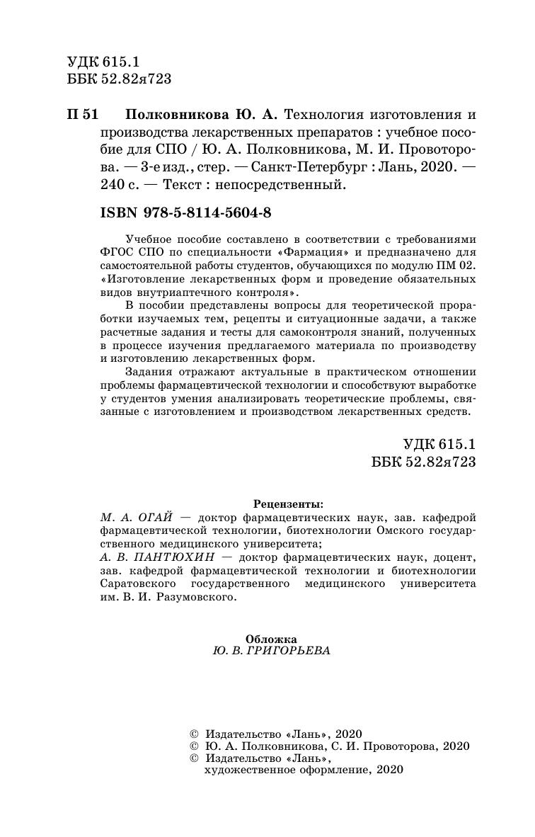 Учебное пособие составлено в соответствии с требованиями ФГОС СПО по специальности «Фармация» и предназначено для самостоятельной работы студентов, обучающихся по модулю ПМ. 02 «Изготовление лекарственных форм и проведение обязательных видов внутриаптечного контроля».