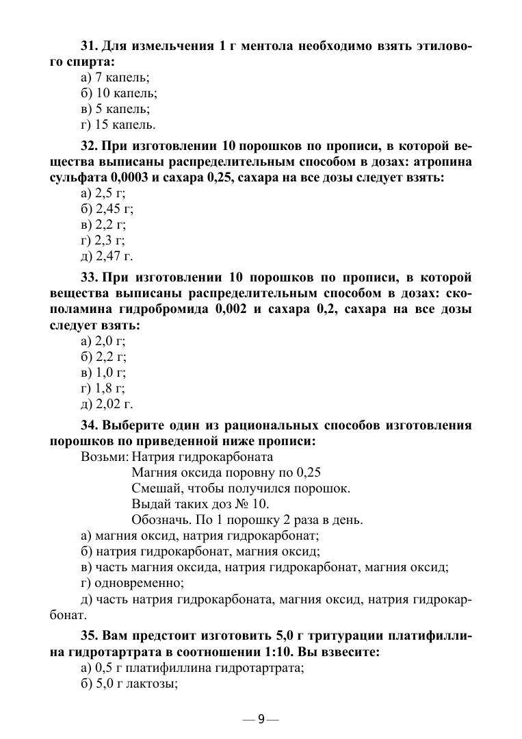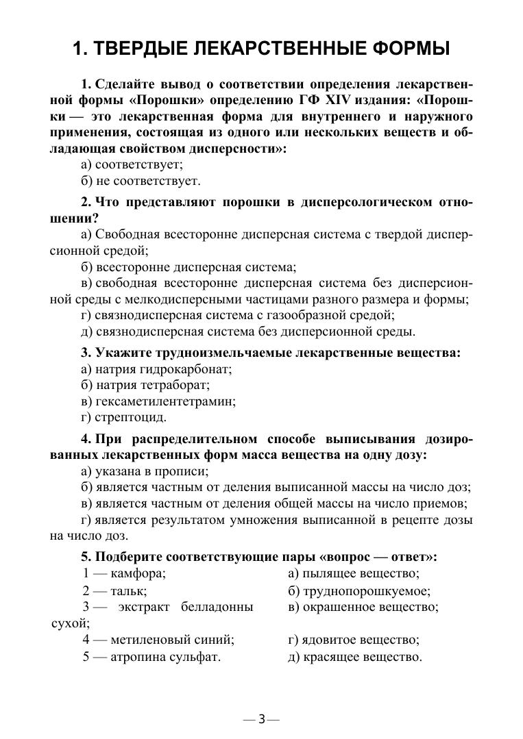 Технология изготовления лекарственных форм. Тестовые задания и ситуационные задачи