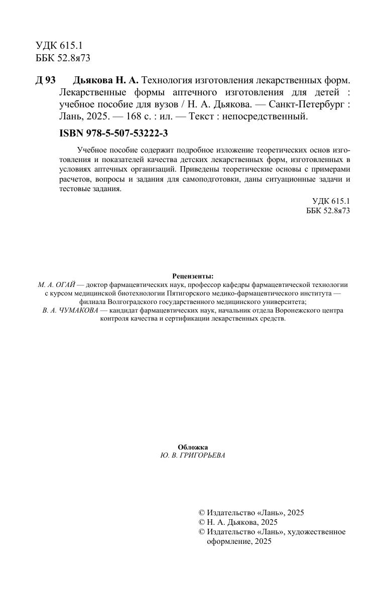 Учебное пособие содержит подробное изложение теоретических основ изготовления и показателей качества детских лекарственных форм, изготовленных в условиях аптечных организаций. Приведены теоретические основы с примерами расчетов, вопросы и задания для самоподготовки, даны ситуационные задачи и тестовые задания.