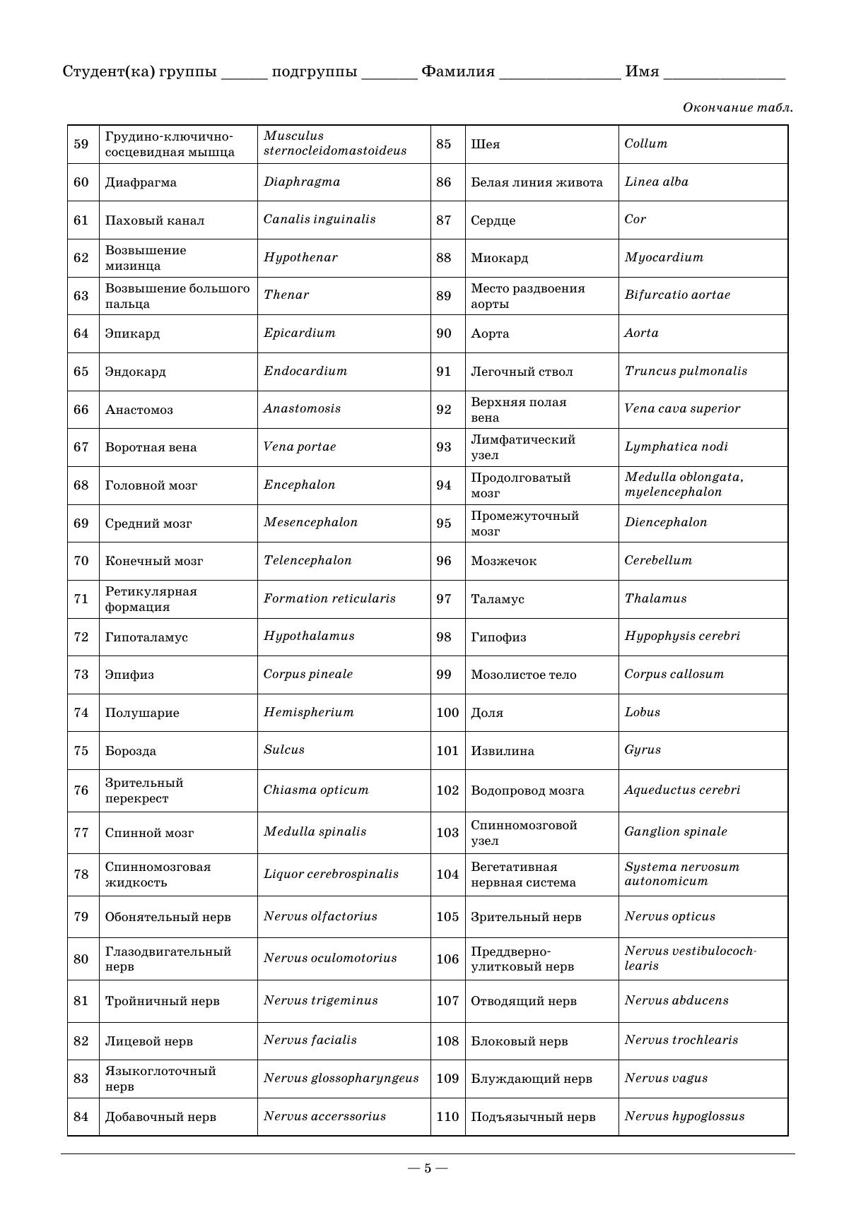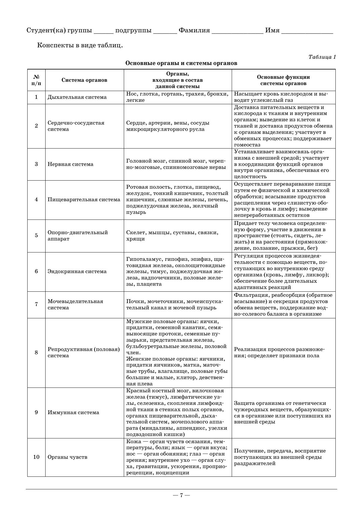 Рабочая тетрадь по анатомии и физиологии. Ответы