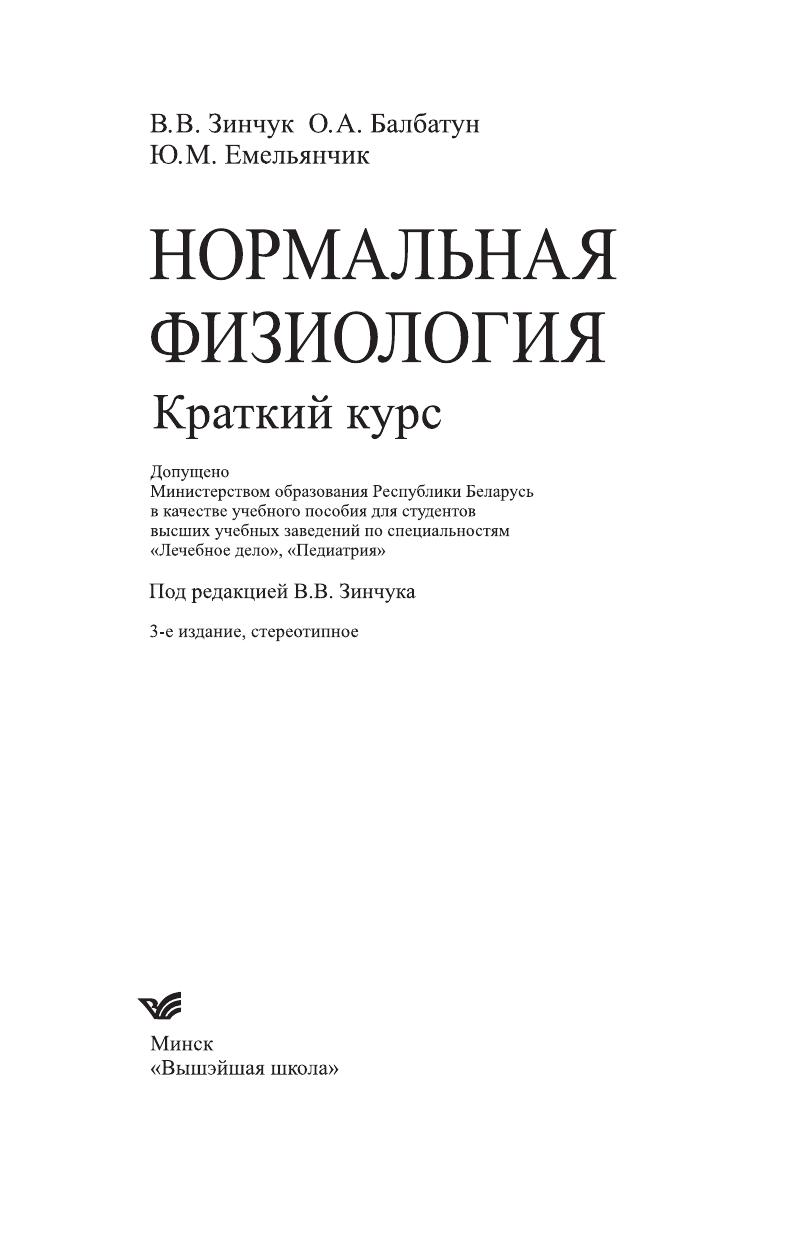 Нормальная физиология. Краткий курс