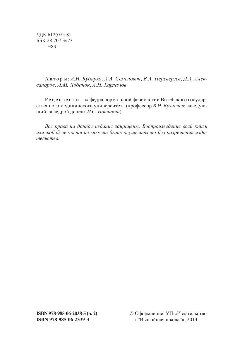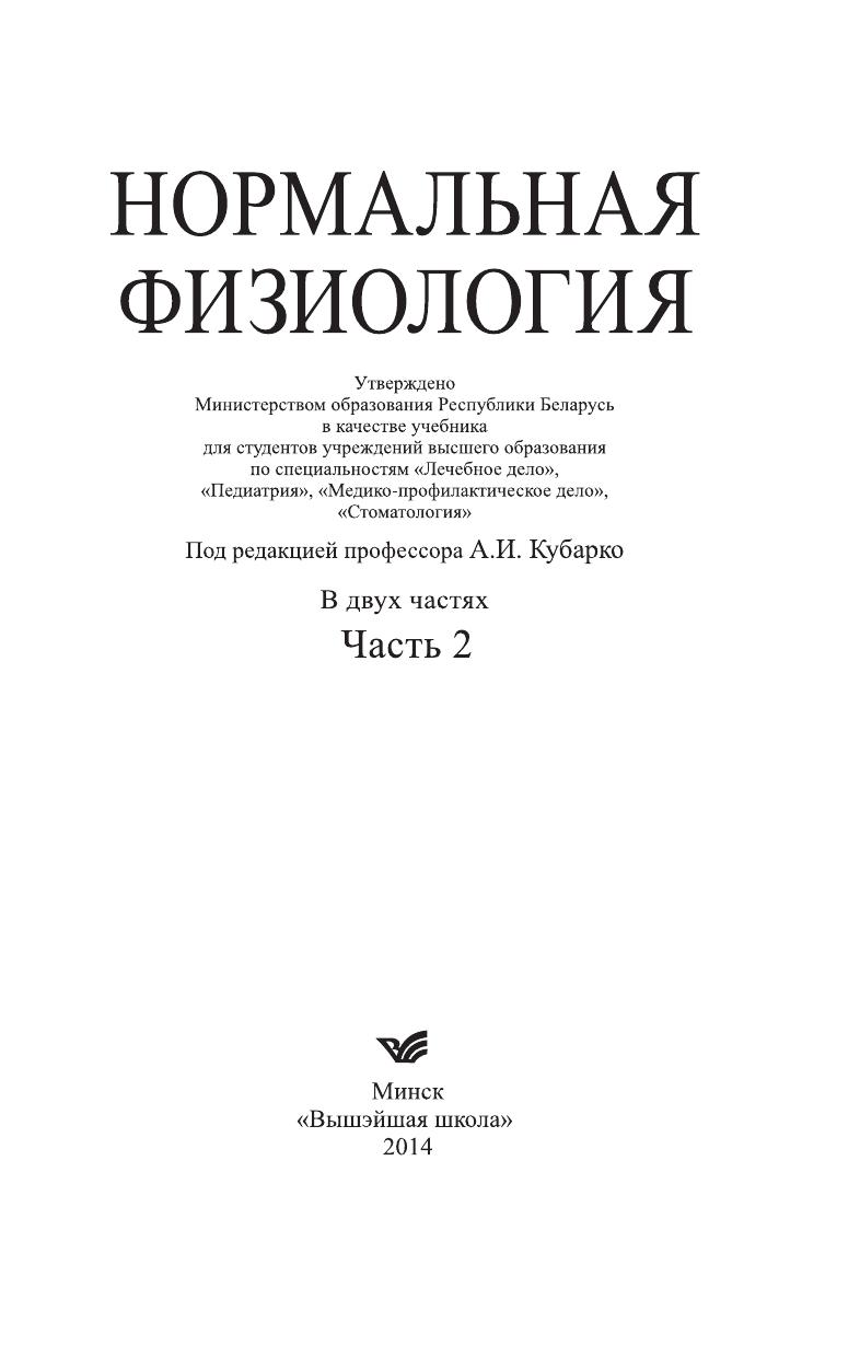 Освещены вопросы физиологии кровообращения, дыхания, пищеварения и выделения. Описаны терморегуляция, обмен веществ и энергии, сенсорные системы, интегративные функции мозга. Для студентов учреждений высшего образования по специальностям «Лечебное дело», «Педиатрия», «Медико-профилактическое дело», «Стоматология», аспирантов, преподавателей.