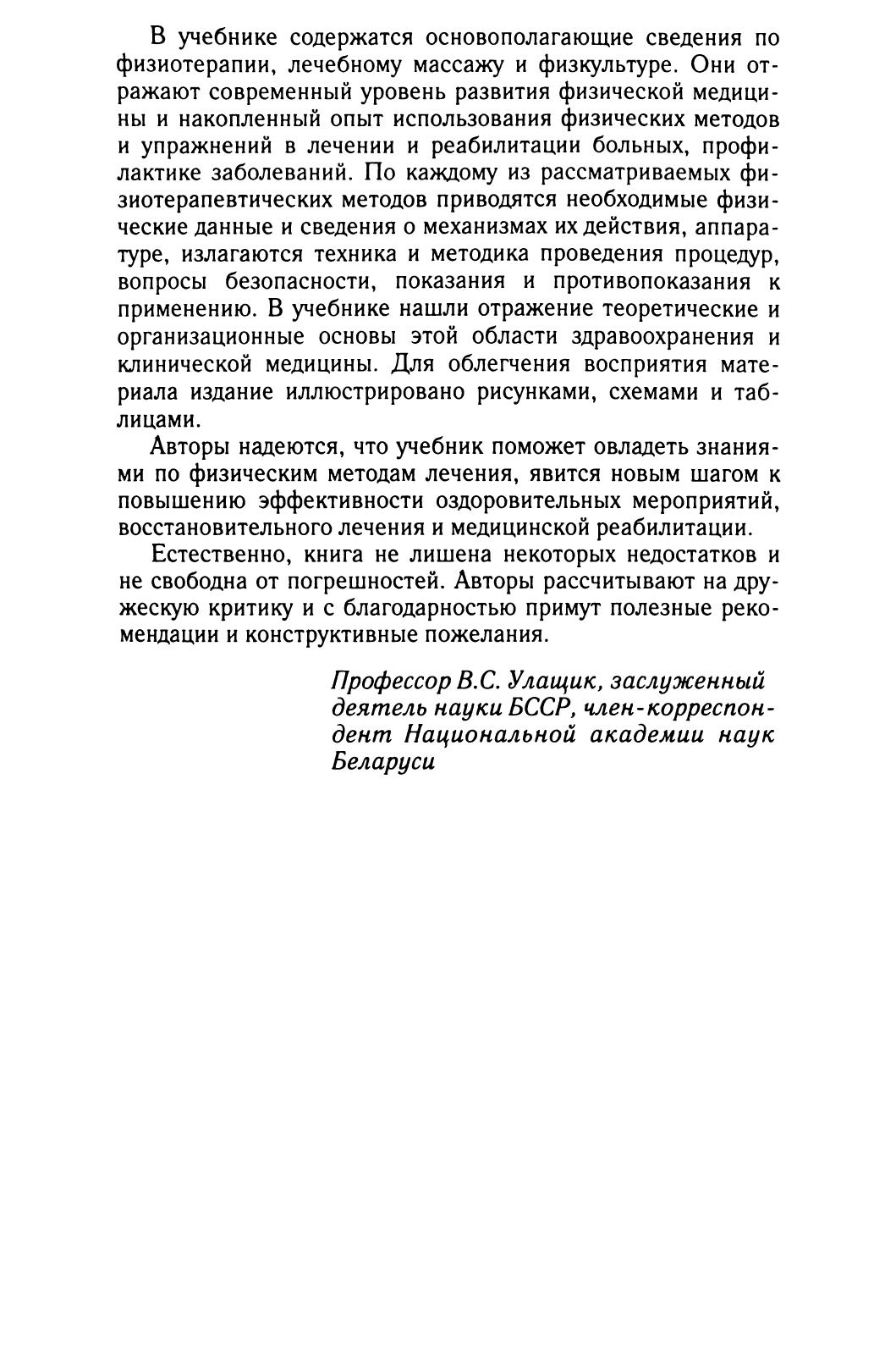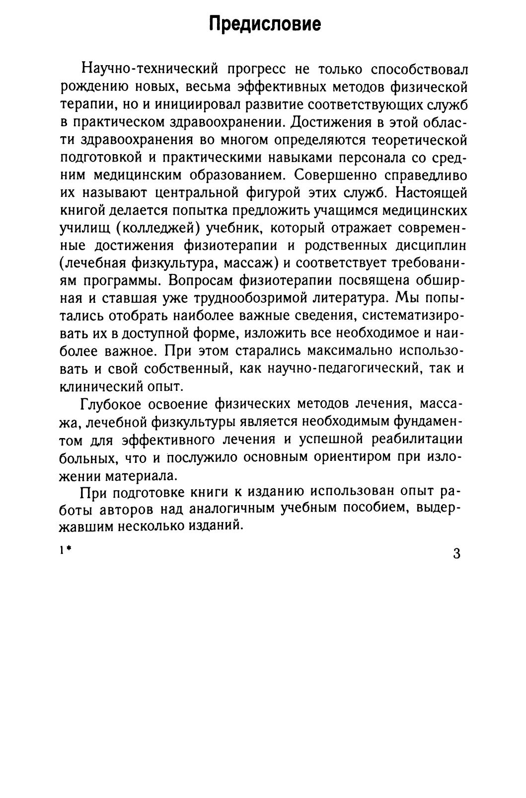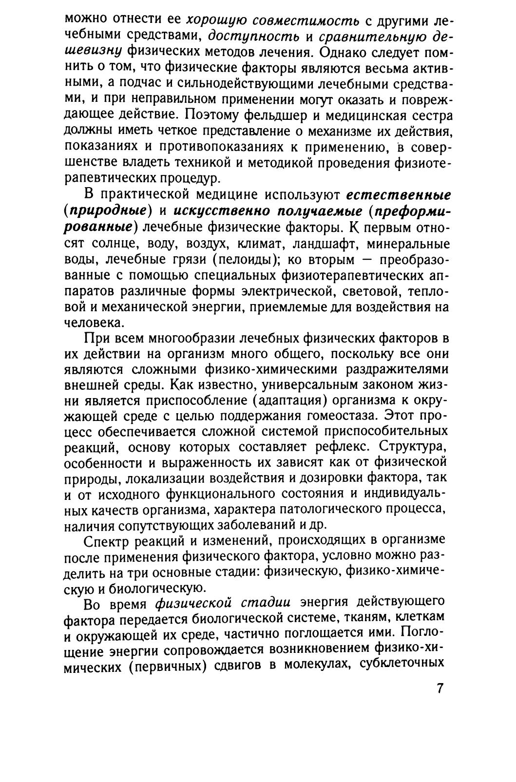 Дана характеристика основных природных и преформированных лечебных физических факторов рассмотрены механизм действия, показания и противопоказания, методика процедур, аппаратура, организация работы физиотерапевтического кабинета с указанием обязанностей медицинской сестры и правил техники безопасности изложены основы лечебной физкультуры, массажа и медицинского контроля. Для учащихся медицинских училищ и колледжей, практикующих медицинских работников среднего звена.
