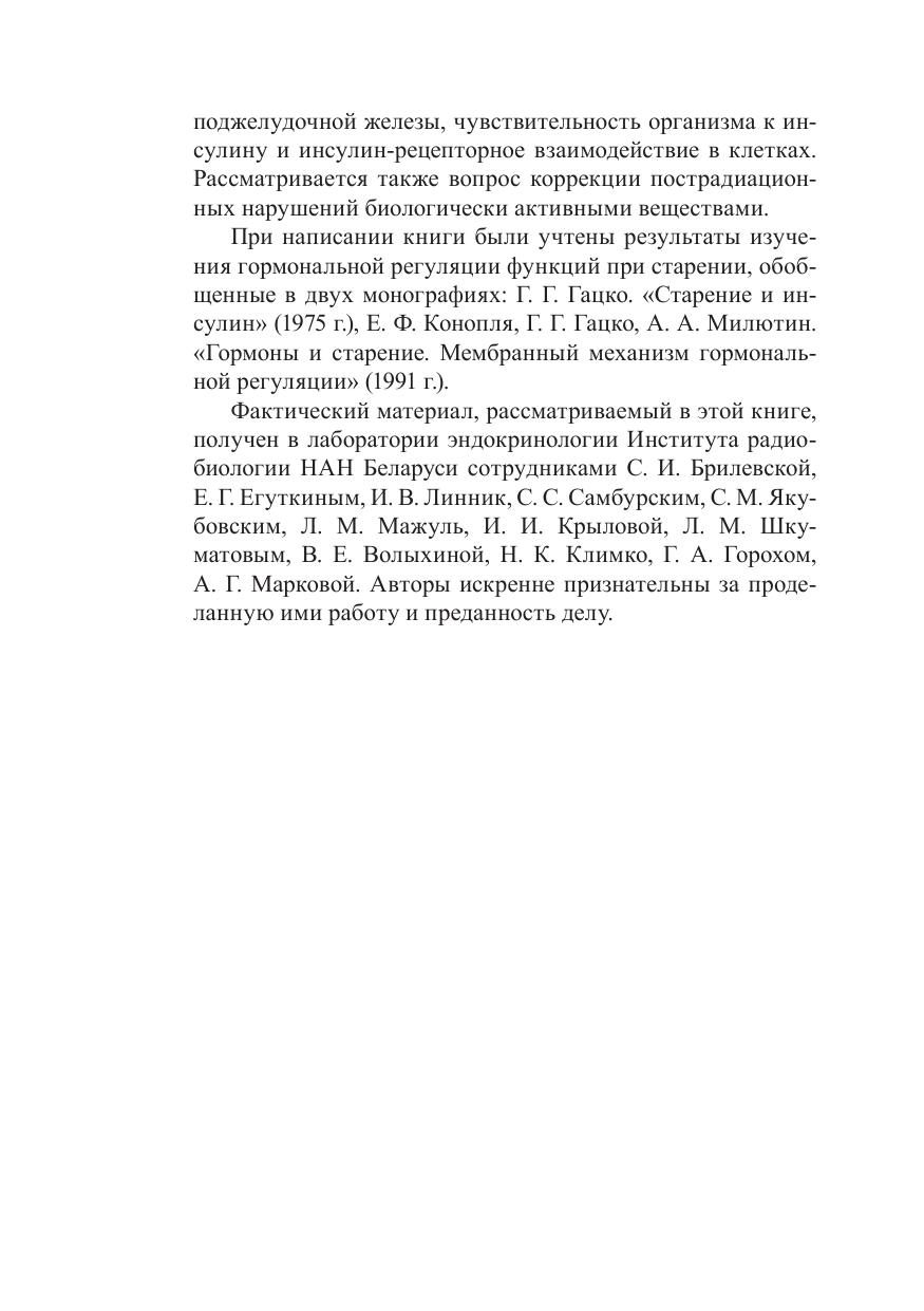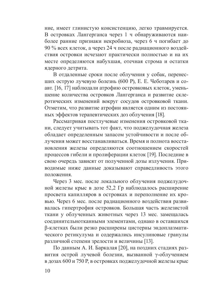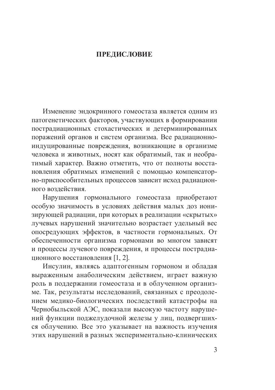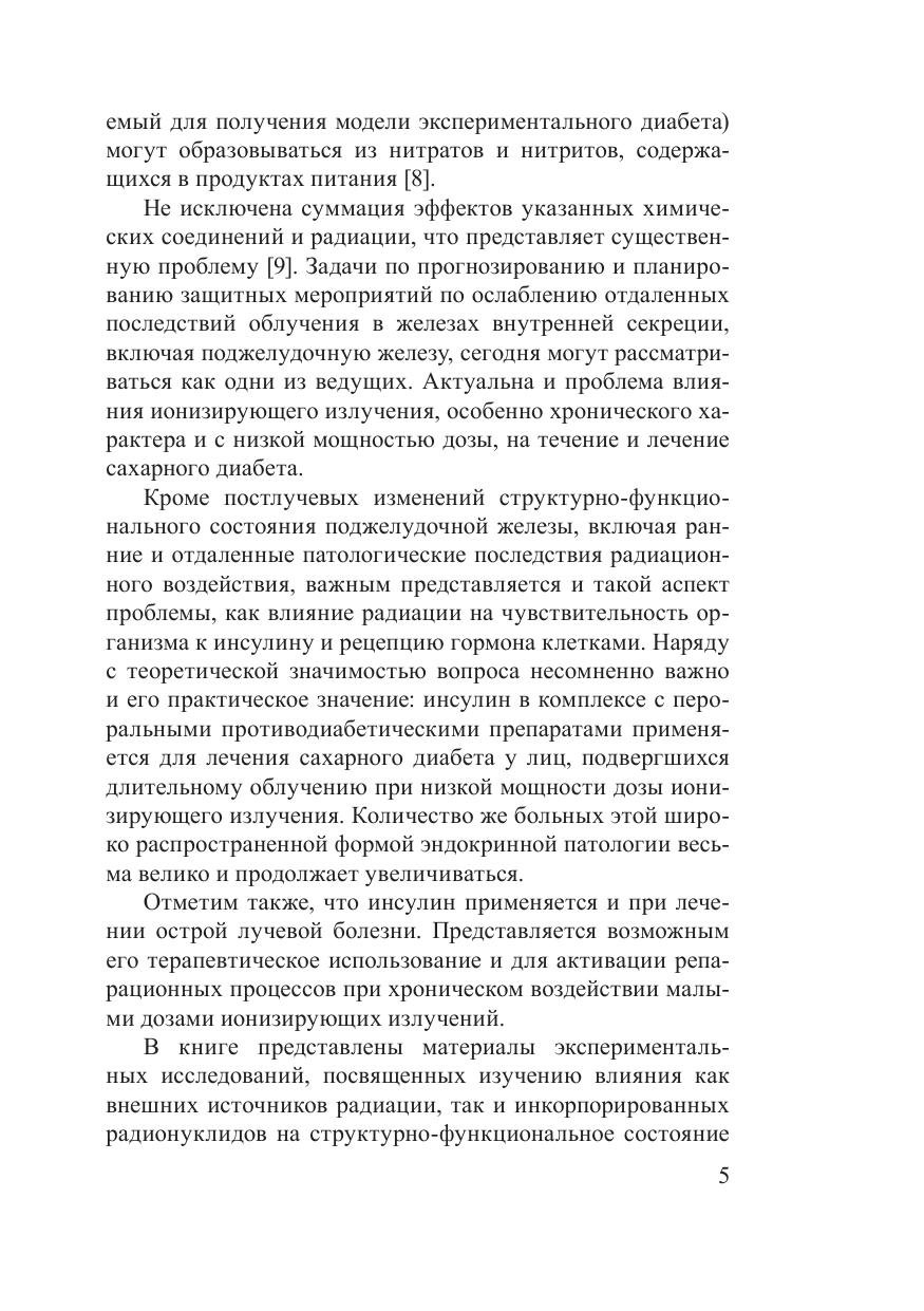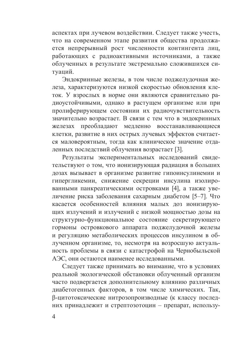 В монографии представлены материалы экспериментальных и клинических исследований, посвященных изучению влияния как внешних источников радиации, так и инкорпорированных радионуклидов на структурно-функциональное состояние поджелудочной железы, чувствительность организма к инсулину и инсулин-рецепторное взаимодействие в клетках, эпидемиологию, течение и лечение сахарного диабета. Разработаны методы, которые могут быть использованы в медицинской практике для контроля процесса получения препаратов инсулина в фармакологическом производстве и для выделения панкреатических островков с целью их трансплантации больным сахарным диабетом. Монография рассчитана на научных работников, занимающихся проблемами радиобиологии, эндокринологии, на медицинских работников, а также на преподавателей и студентов соответствующих специальностей.
