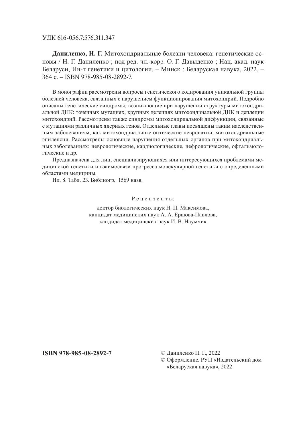 В монографии рассмотрены вопросы генетического кодирования уникальной группы болезней человека, связанных с нарушением функционирования митохондрий. Подробно описаны генетические синдромы, возникающие при нарушении структуры митохондриальной ДНК: точечных мутациях, крупных делециях митохондриальной ДНК и деплеции митохондрий. Рассмотрены также синдромы митохондриальной дисфункции, связанные с мутациями различных ядерных генов. Отдельные главы посвящены таким наследственным заболеваниям, как митохондриальные оптические невропатии, митохондриальные эпилепсии. Рассмотрены основные нарушения отдельных органов при митохондриальных заболеваниях: неврологические, кардиологические, нефрологические, офтальмологические и др.