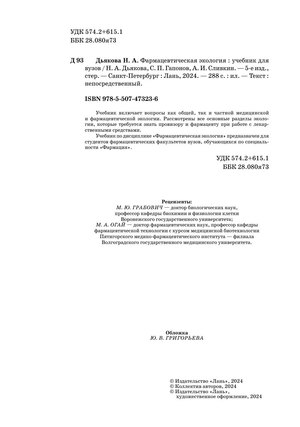Учебник включает вопросы как общей, так и частной медицинской и фармацевтической экологии. Рассмотрены все основные разделы экологии, которые требуется знать провизору и фармацевту при работе с лекарственными средствами. Учебник по дисциплине «Фармацевтическая экология» предназначен для студентов фармацевтических факультетов, обучающихся по специальности «Фармация».