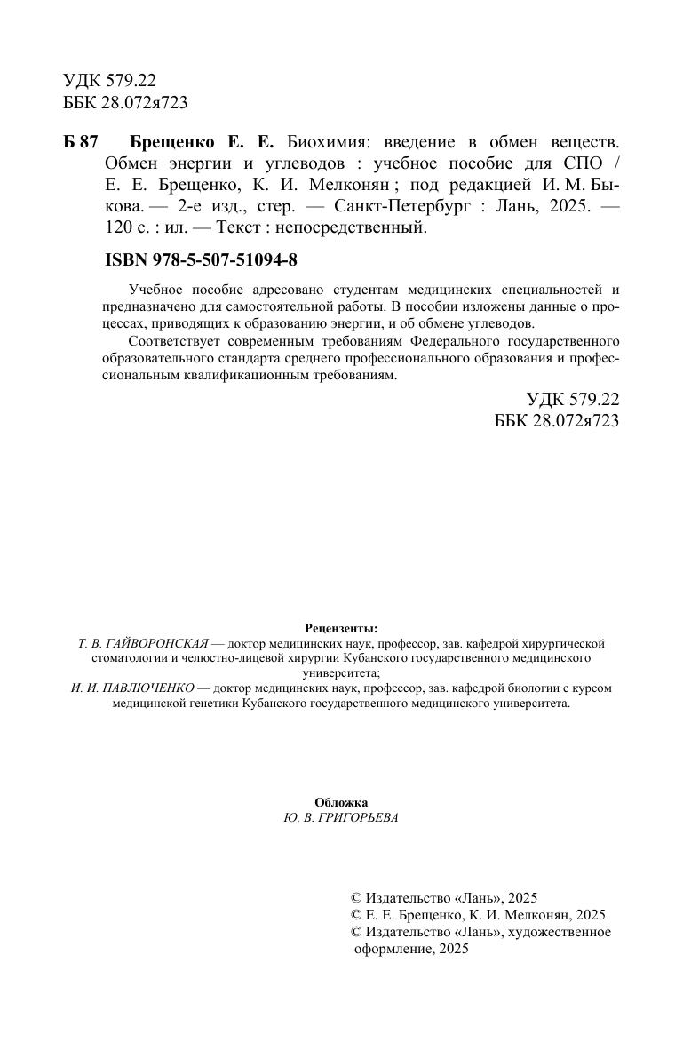 Учебное пособие адресовано студентам медицинских специальностей и предназначено для самостоятельной работы. В пособии изложены данные о процессах, приводящих к образованию энергии, и об обмене углеводов. Соответствует современным требованиям Федерального государственного образовательного стандарта среднего профессионального образования и профессиональным квалификационным требованиям.