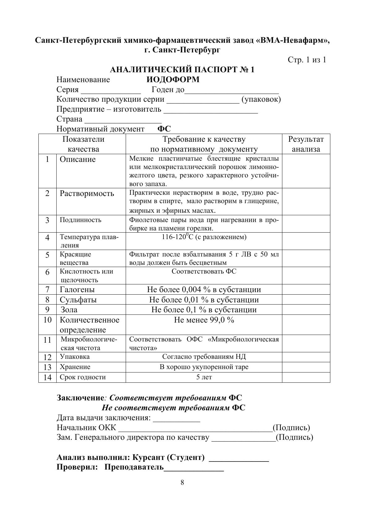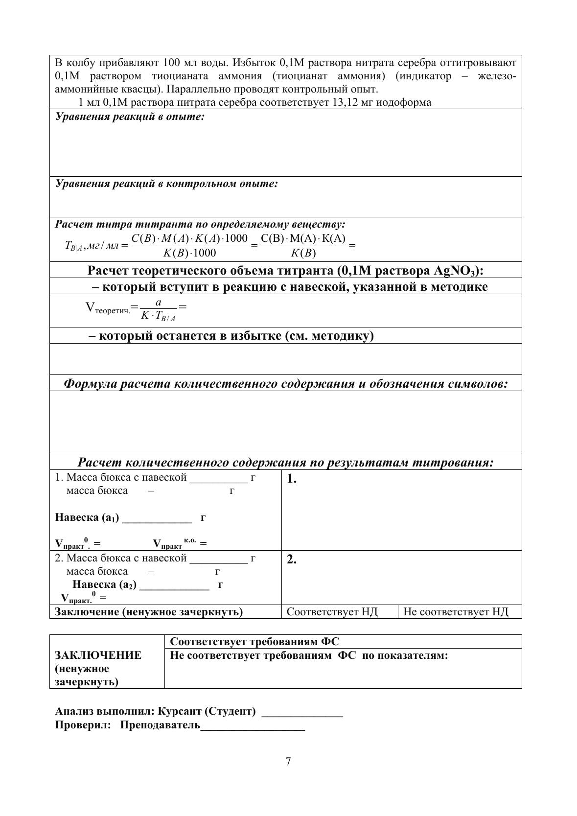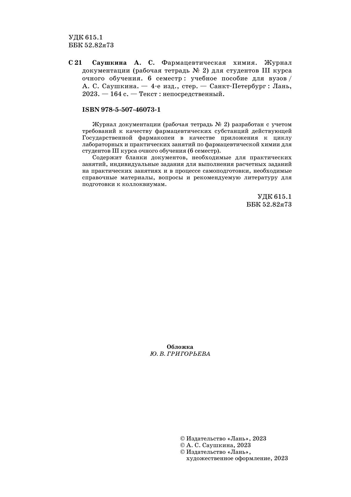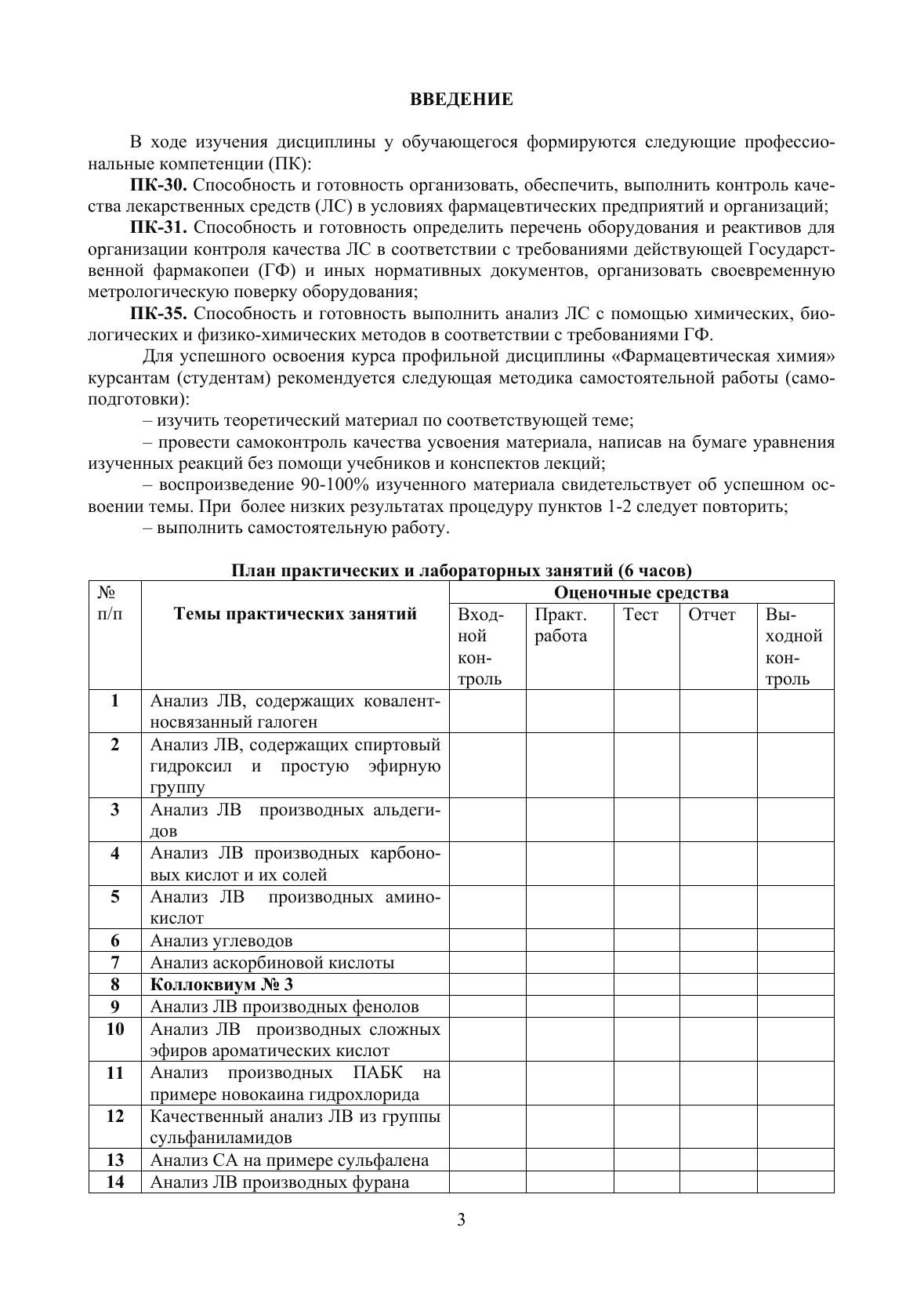 Журнал документации (рабочая тетрадь № 2) разработан с учетом требований к качеству фармацевтических субстанций действующей Государственной фармакопеи в качестве приложения к циклу лабораторных и практических занятий по фармацевтической химии для студентов III курса очного обучения (6 семестр). Содержит бланки документов, необходимые для практических занятий, индивидуальные задания для выполнения расчетных заданий на практических занятиях и в процессе самоподготовки, необходимые справочные материалы, вопросы и рекомендуемая литература для подготовки к коллоквиумам.