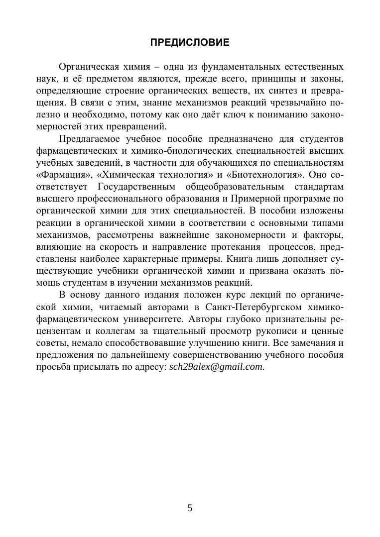 В учебном пособии наиболее распространённые органические реакции систематизированы по механизмам. В связи с этим даётся представление об основных типах механизмов химических реакций в органической химии. Особое внимание уделено перициклическим реакциям. Приведены примеры реакций из разных классов органических веществ. Книга предназначена для преподавателей, студентов и аспирантов химико-технологических вузов, химико-биологических специальностей медицинских университетов, в частности обучающихся по специальности «Фармация» и направлениям подготовки «Химическая технология», «Биотехнология».
