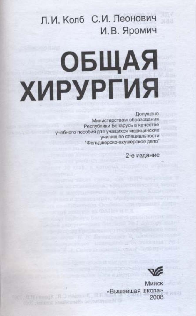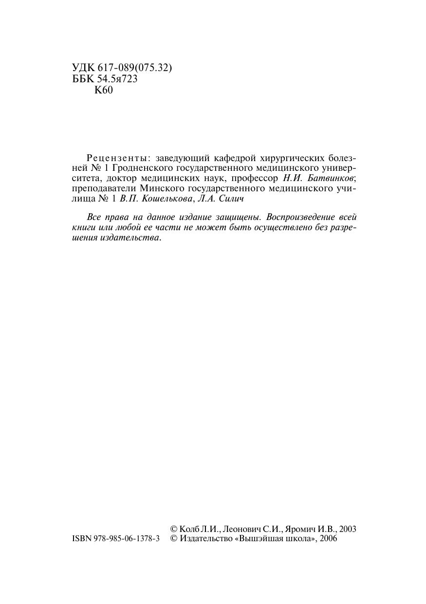 Рассмотрены асептика и антисептика, новые положения о переливании крови, сепсисе, ВИЧ-инфекции, внутрибольничной инфекции. Включены разделы об эндоскопической, пластической, восстановительной, косметической хирургии, трансплантологии, этике и деонтологии в хирургии. Для учащихся медицинских училищ и колледжей, практикующих работников среднего звена.