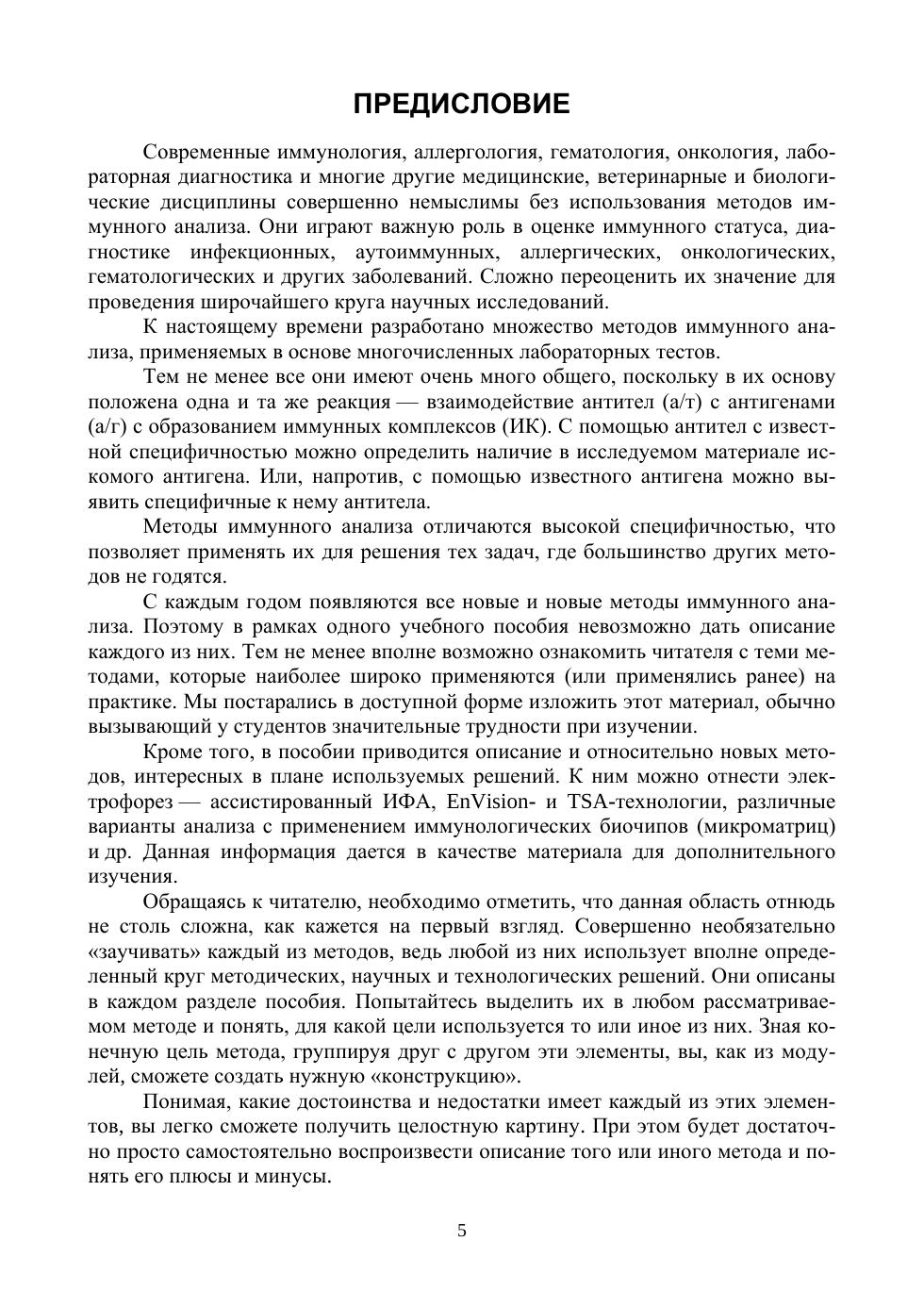 В учебном пособии изложены теоретические основы методов иммунного анализа, дается описание применяемых научных и технологических реше-ний. Для каждого из представленных методов указана область применения, описаны преимущества и недостатки, технологические ограничения, а также возможные пути их преодоления. В пособии приводятся задания различного уровня сложности, направленные как на закрепление тео-ретического материала, так и на развитие научного мышления.