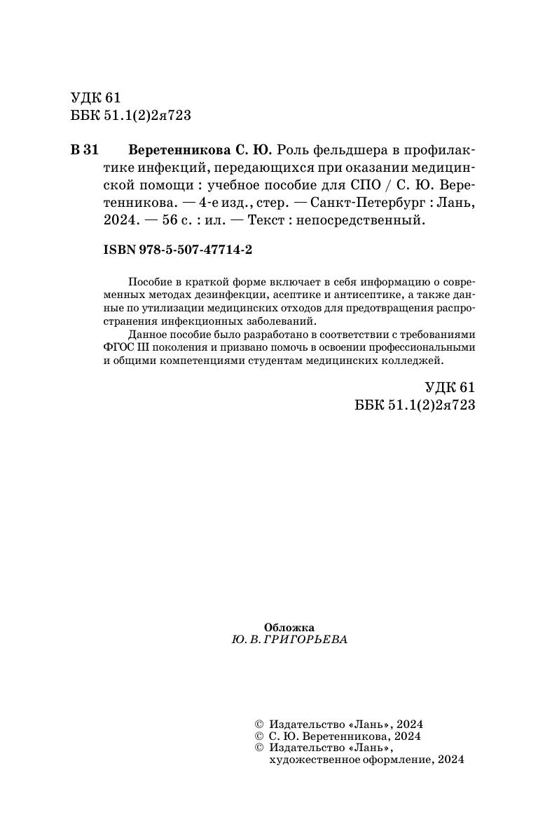 Пособие в краткой форме включает себя информацию о современных методах дезинфекции, асептике и антисептике, а также данные по утилизации медицинских отходов для предотвращения распространения инфекционных заболеваний. Данное пособие было разработано в соответствии с требованиями ФГОС III поколения и призвано помочь в освоении профессиональными и общими компетенциями студентам медицинских колледжей.
