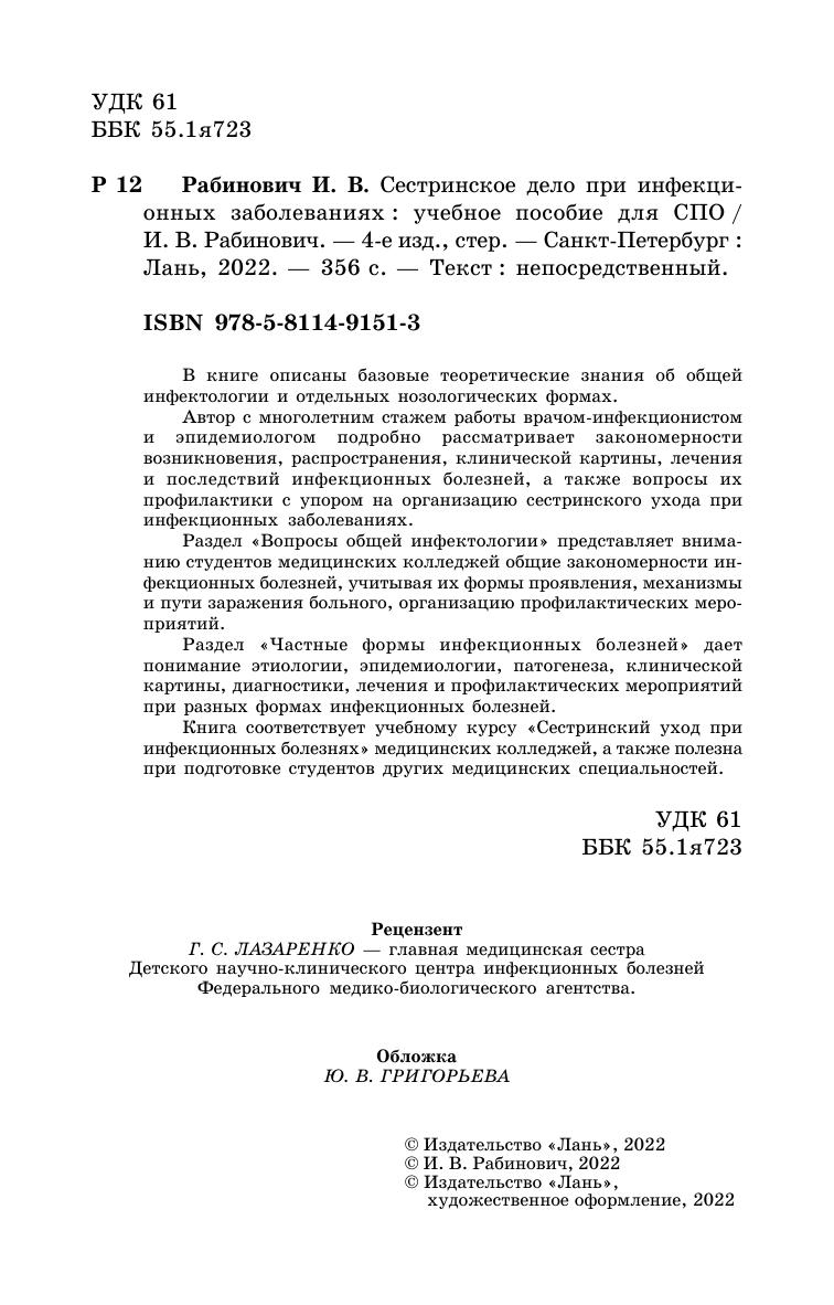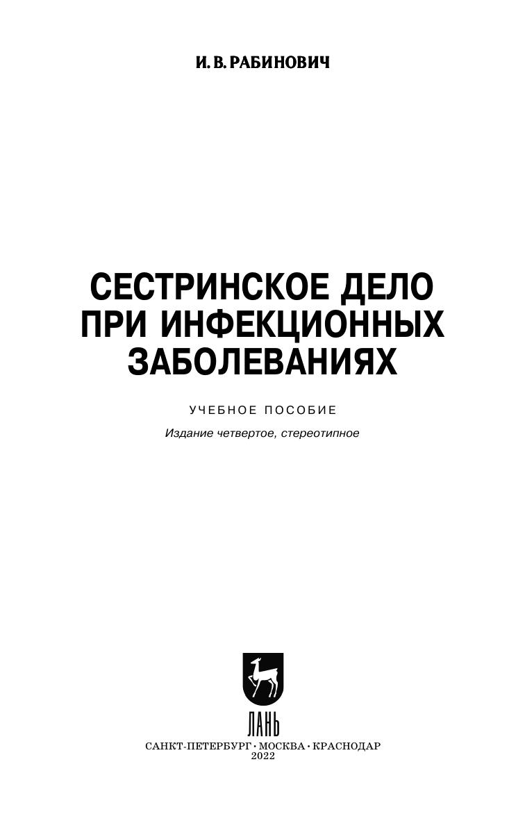 Книга соответствует учебному курсу «Сестринский уход при инфекционных болезнях» медицинских колледжей, а также полезна при подготовке студентов других медицинских специальностей.
