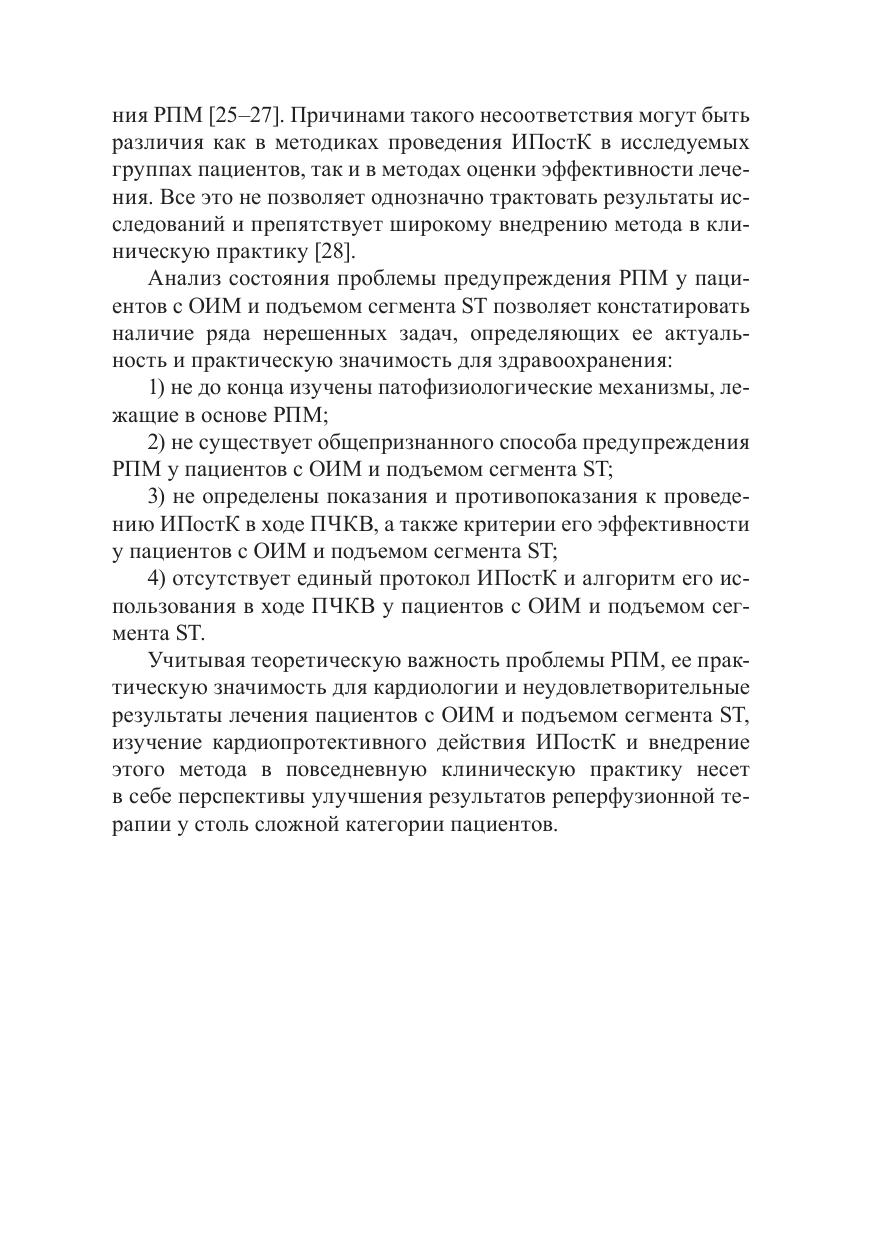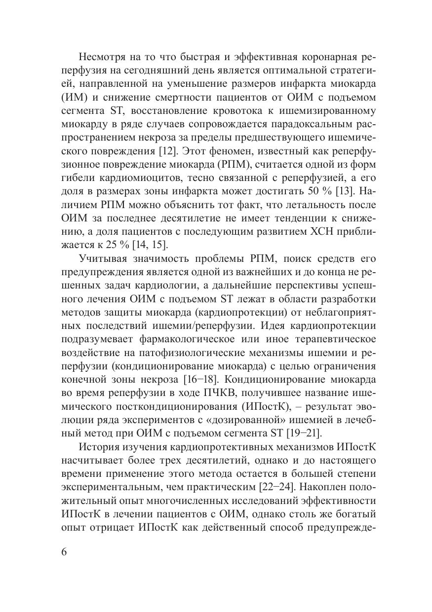В контексте развития реперфузионной терапии освещены наиболее известные методы кардиопротекции, включая кондиционирование миокарда, история их развития, применение в эксперименте и клинической практике. Основное внимание уделено ишемическому посткондиционированию миокарда как одному из наиболее эффективных методов профилактики реперфузионного повреждения у пациентов с острым инфарктом миокарда. Подробно рассмотрены патофизиологические механизмы реперфузионного повреждения миокарда и кардиопротективного действия пре- и посткондиционирования. Описаны оригинальный протокол ишемического посткондиционирования, алгоритм его использования в ходе первичного чрескожного коронарного вмешательства, представлены непосредственные и отдаленные результаты применения метода у пациентов с острым инфарктом миокарда с подъемом сегмента ST.