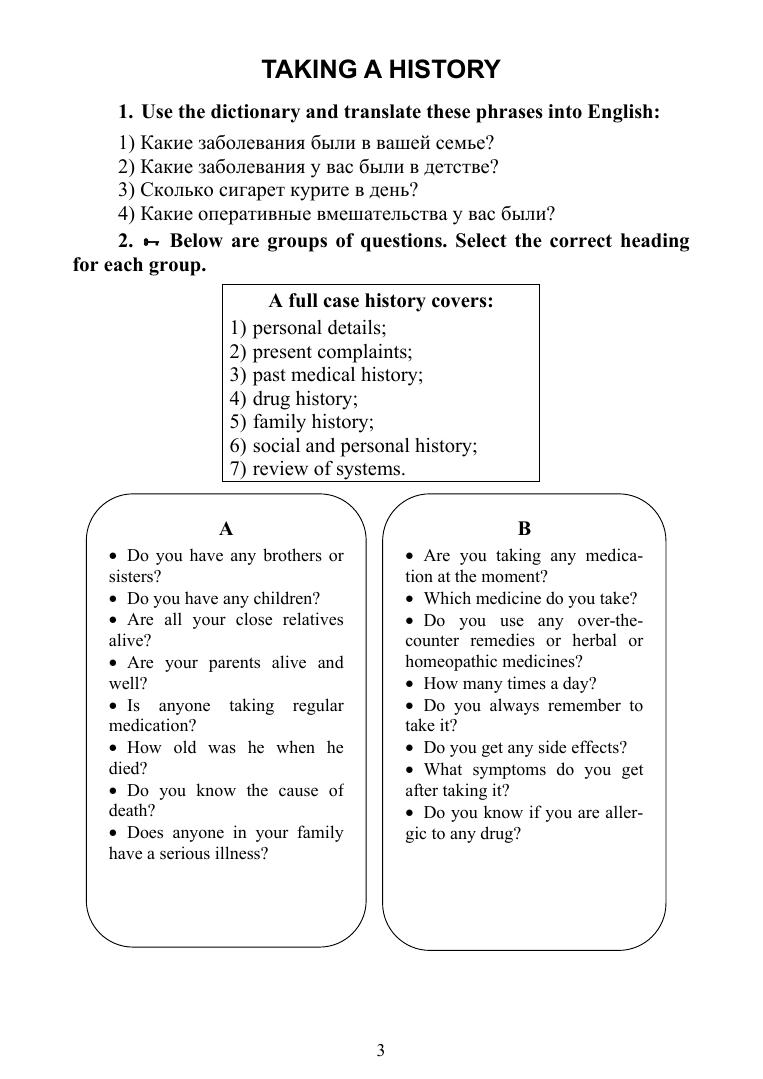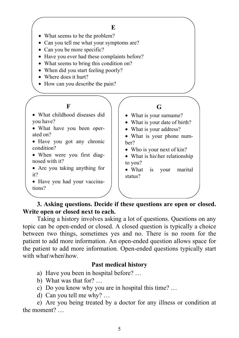 Пособие включает в себя 12 уроков, цель которых — формирование навыков говорения в конкретных ситуациях профессионального общения, например: опрос пациента о имеющихся симптомах, боли, общение с пациентами во время выполнения различных манипуляций. Каждый урок включает в себя изучение необходимой лексики, лексические и коммуникативные упражнения, которые позволяют усвоить коммуникативно-функциональный репертуар и профессиональную лексику, а также способствуют развитие навыков реактивности в рамках диалогического общения. Особое внимание уделяется умению задавать вопросы в рамках профессионального общения медсестер с пациентами. Каждый урок заканчивается ролевой игрой, в рамках которой имитируется ситуация профессионального общения. Задания пособия снабжены ключами. Соответствует современным требованиям Федерального государственного образовательного стандарта среднего профессионального образования и профессиональным квалификационным требованиям. Учебное пособие предназначено для преподавателей и студентов медицинских колледжей, специальность «Сестринское дело» по учебной дисциплине «Английский язык».