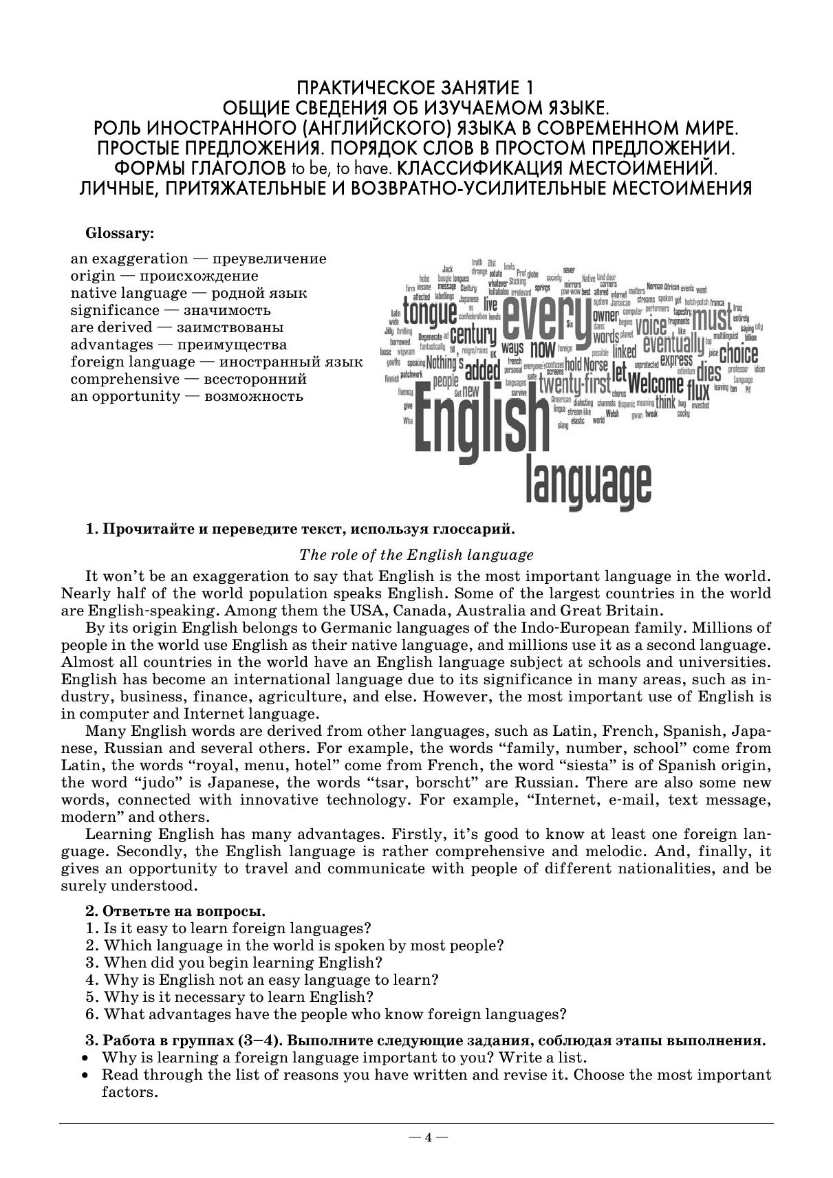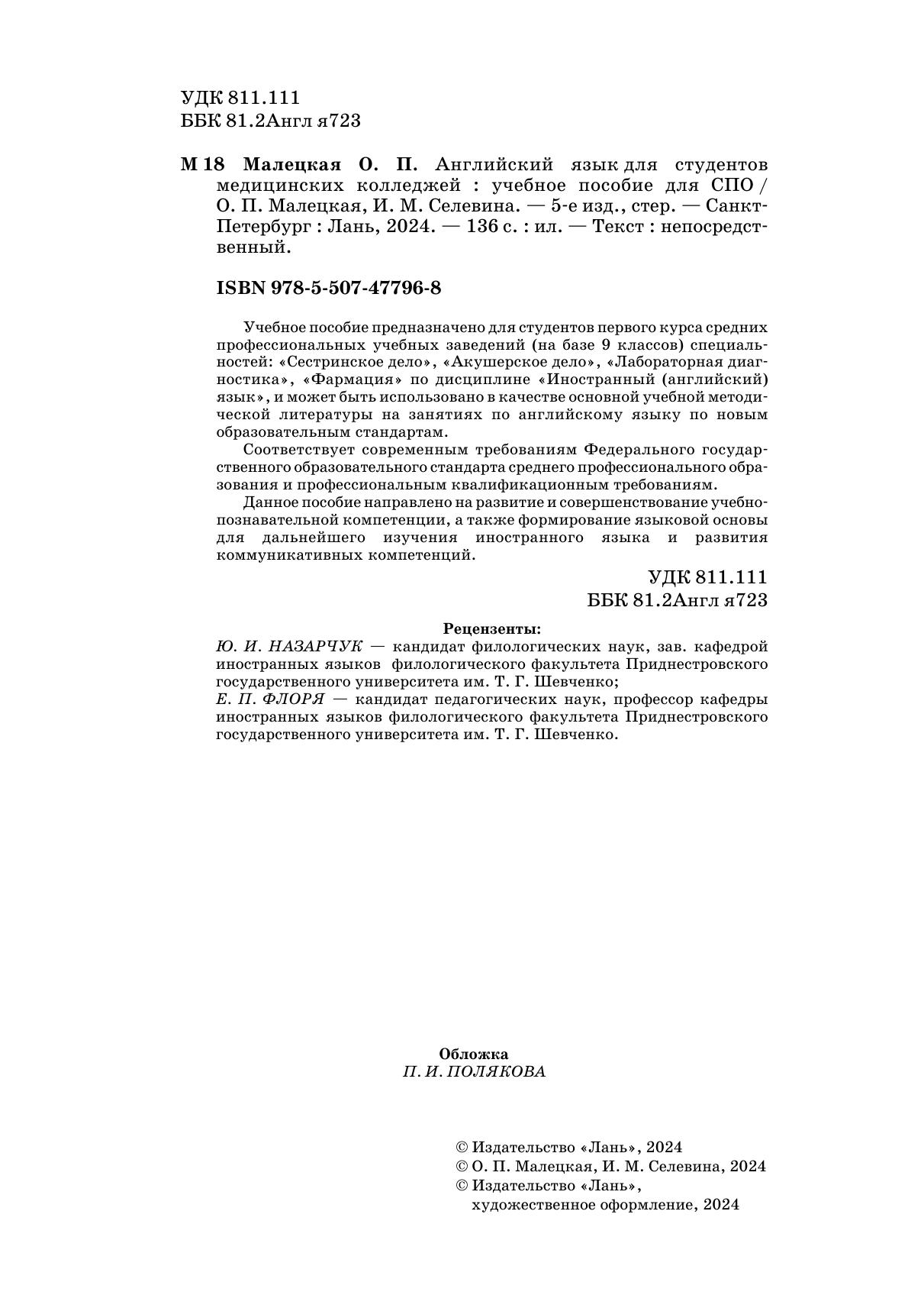 Учебное пособие предназначено для студентов первого курса средних профессиональных учебных заведений (на базе 9 классов) специальностей: «Сестринское дело», «Акушерское дело», «Лабораторная диагностика», «Фармация» по дисциплине «Иностранный (английский) язык», и может быть использовано в качестве основной учебной методической литературы на занятиях по английскому языку по новым образовательным стандартам. Соответствует современным требованиям Федерального государственного образовательного стандарта среднего профессионального образования и профессиональным квалификационным требованиям. Данное пособие направлено на развитие и совершенствование учебно-познавательной компетенции, а также формирование языковой основы для дальнейшего изучения иностранного языка и развития коммуникативных компетенций.