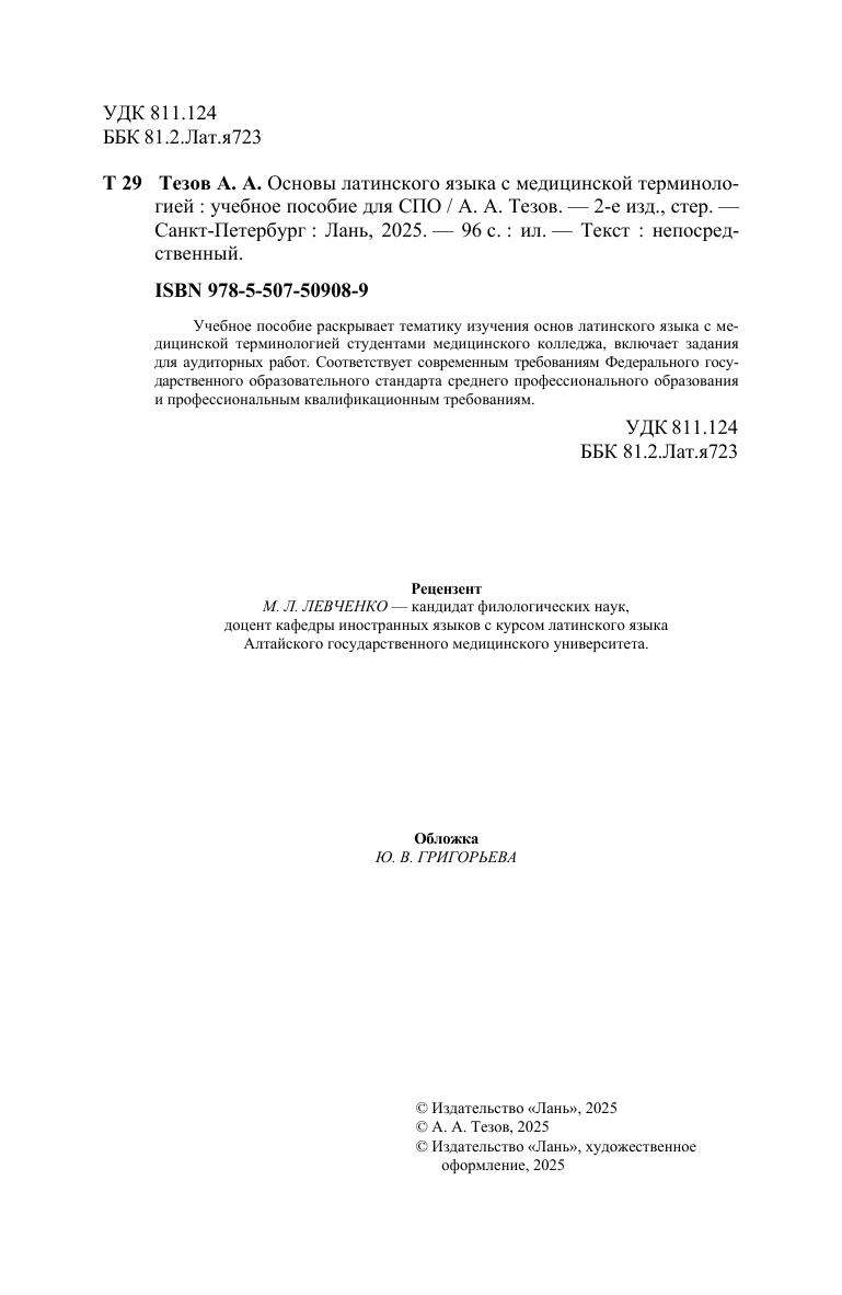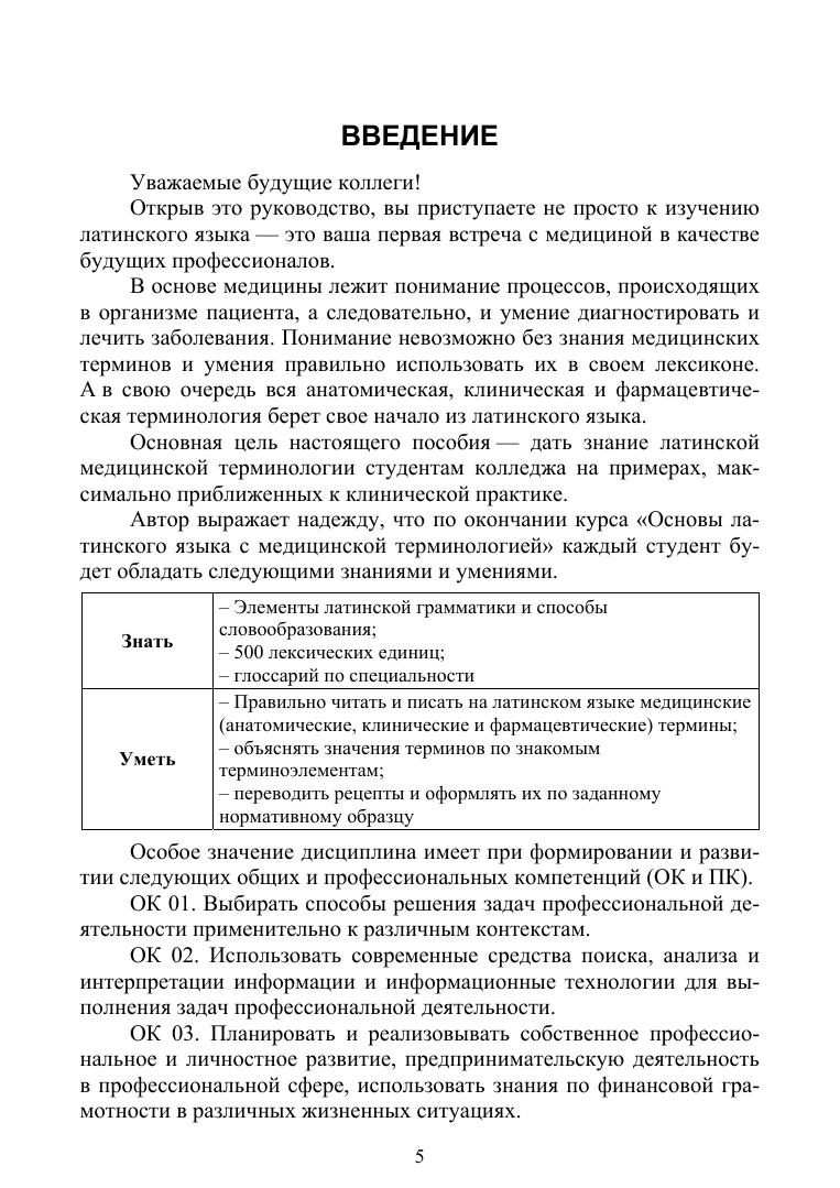 Учебное пособие раскрывает тематику изучения основ латинского языка с медицинской терминологией студентами медицинского колледжа, включает задания для аудиторных работ. Соответствует современным требованиям Федерального государственного образовательного стандарта среднего профессионального образования и профессиональным квалификационным требованиям.