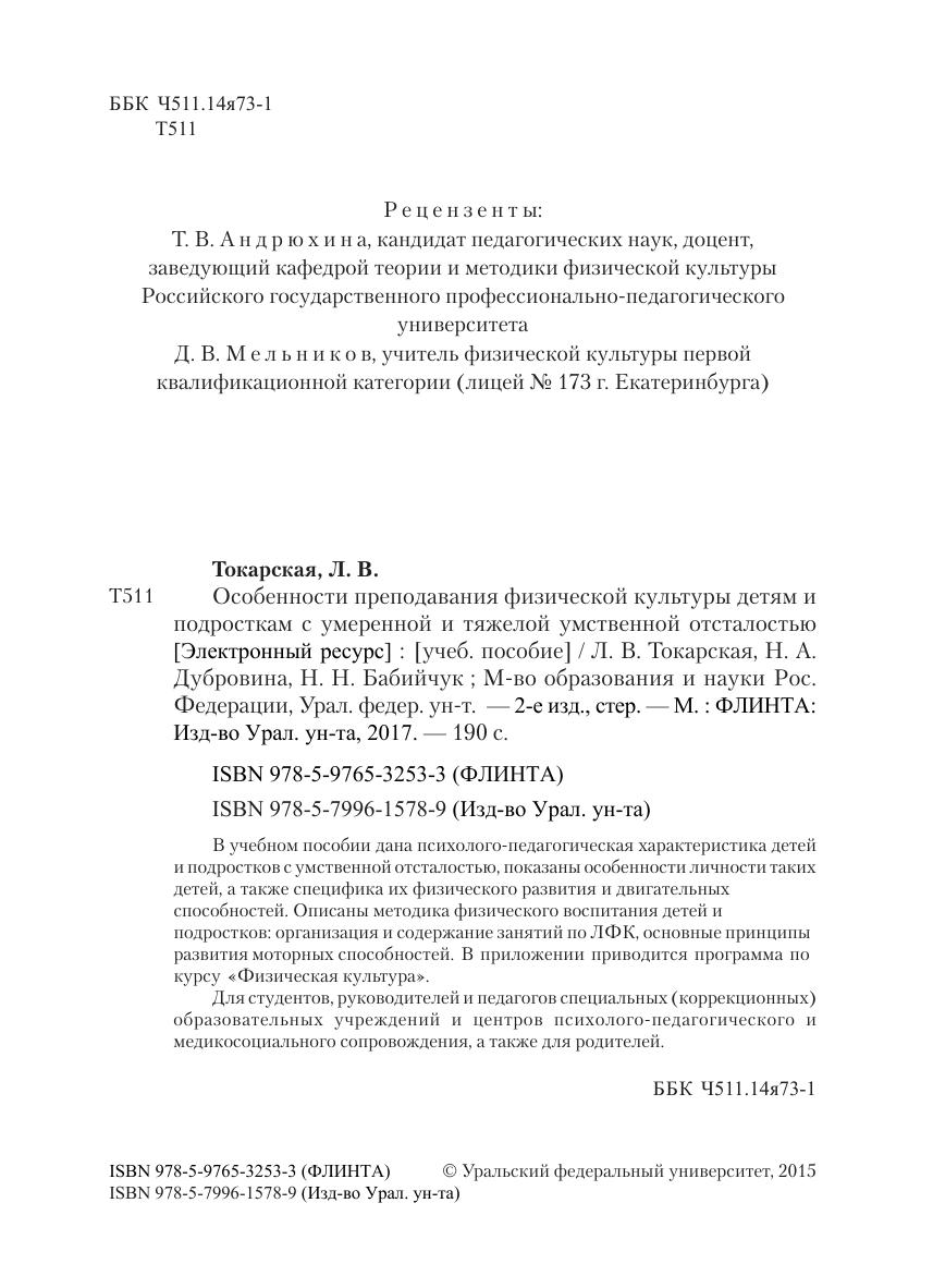 Авторы: Токарская Л.В., Дубровина Н.А., Бабийчук Н.Н.