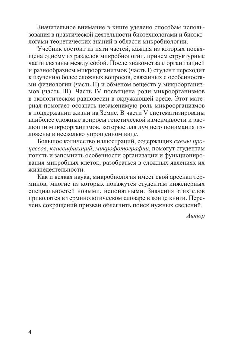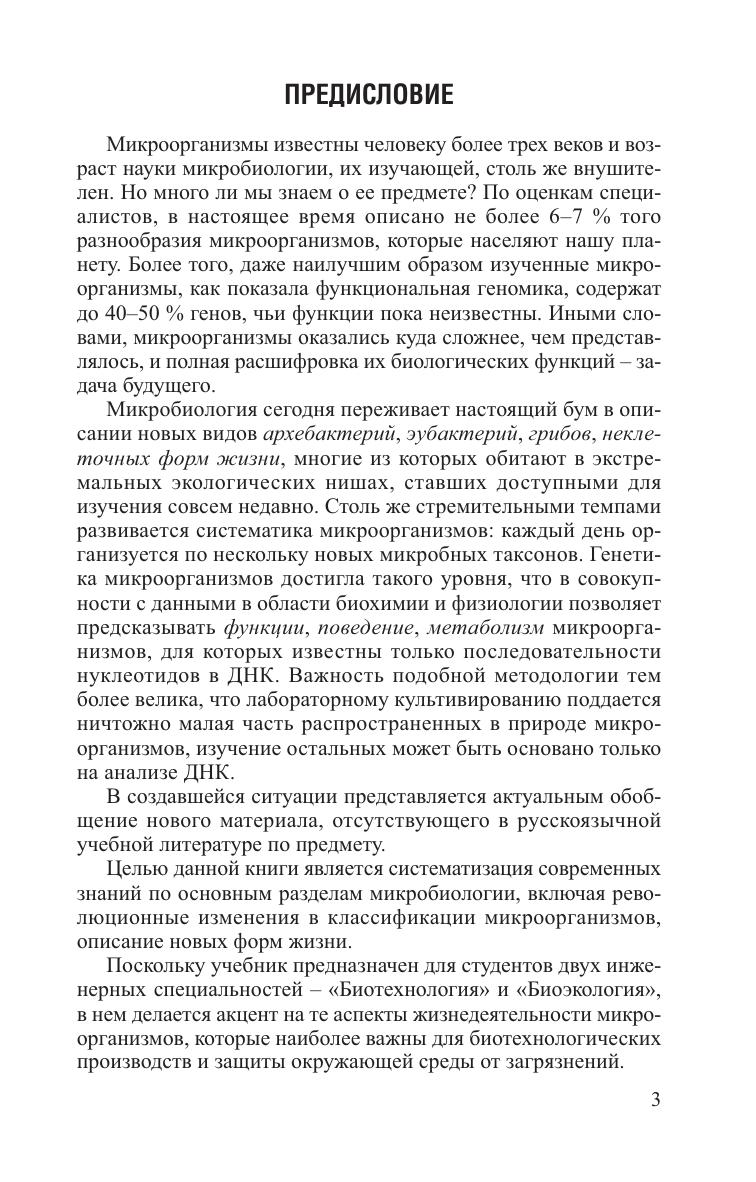 Освещены вопросы классической микробиологии, включающие морфологию, систематику, физиологию, биохимию, экологию и эволюцию представителей разных таксономических групп микроорганизмов: прокариот, дрожжей и мицелиальных грибов, водорослей, протистов, вирусов, а также других неклеточных форм жизни. Для студентов вузов по специальностям "Биотехнология", "Биоэкология". Может быть полезен аспирантам и магистрантам, а также специалистам в области микробиологии.