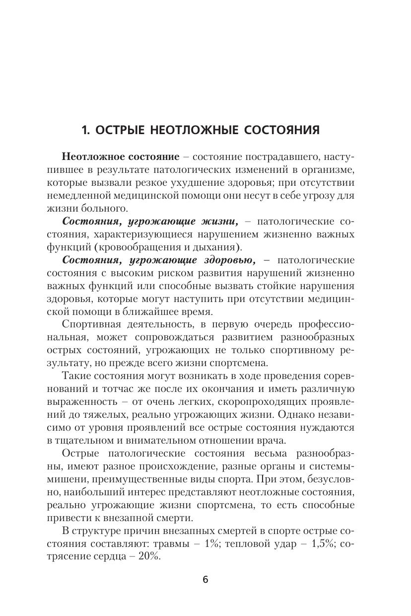 В учебном пособии обобщен опыт мировой спортивной медицины по профилактике и оказанию первой помощи спортсменам в случаях острого нарушения жизнедеятельности в соревновательный и подготовительный периоды. Особая глава посвящена внезапной смерти в спорте, которая заостряет внимание спортивных врачей на необходимости тщательного врачебного контроля спортсменов, скрупулезного спортивного отбора в детском и юношеском спорте. Соответствует современным требованиям Федерального государственного образовательного стандарта среднего профессионального образования и профессиональным квалификационным требованиям. Пособие предназначено для студентов учебных учреждений среднего профессионального образования, для практикующих медицинских работников, также представляет интерес для сотрудников скорой помощи, специалистов спортивной медицины и спортивных ведомств.