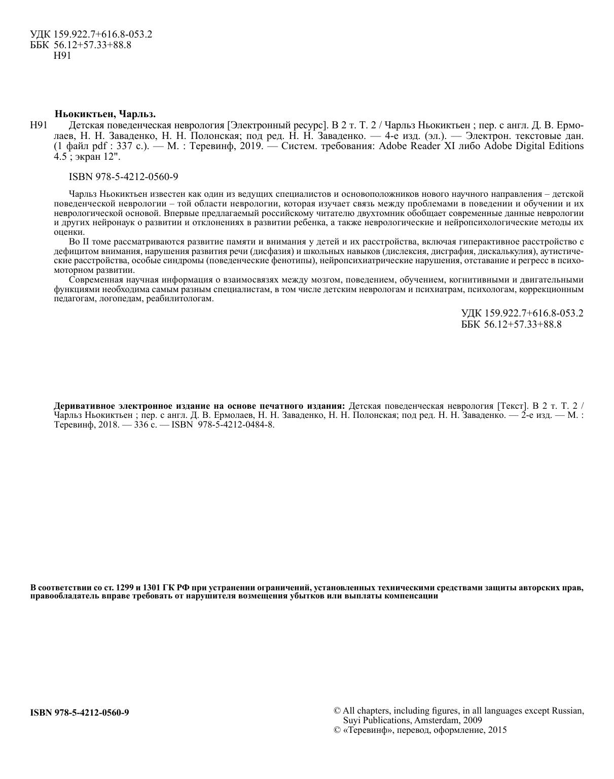 Чарльз Ньокиктьен известен как один из ведущих специалистов и основоположников нового научного направления — детской поведенческой неврологии — той области неврологии, которая изучает связь между проблемами в поведении и обучении и их неврологической основой. Впервые предлагаемый российскому читателю двухтомник обобщает современные данные неврологии и других нейронаук о развитии и отклонениях в развитии ребенка, а также неврологические и нейропсихологические методы их оценки.
