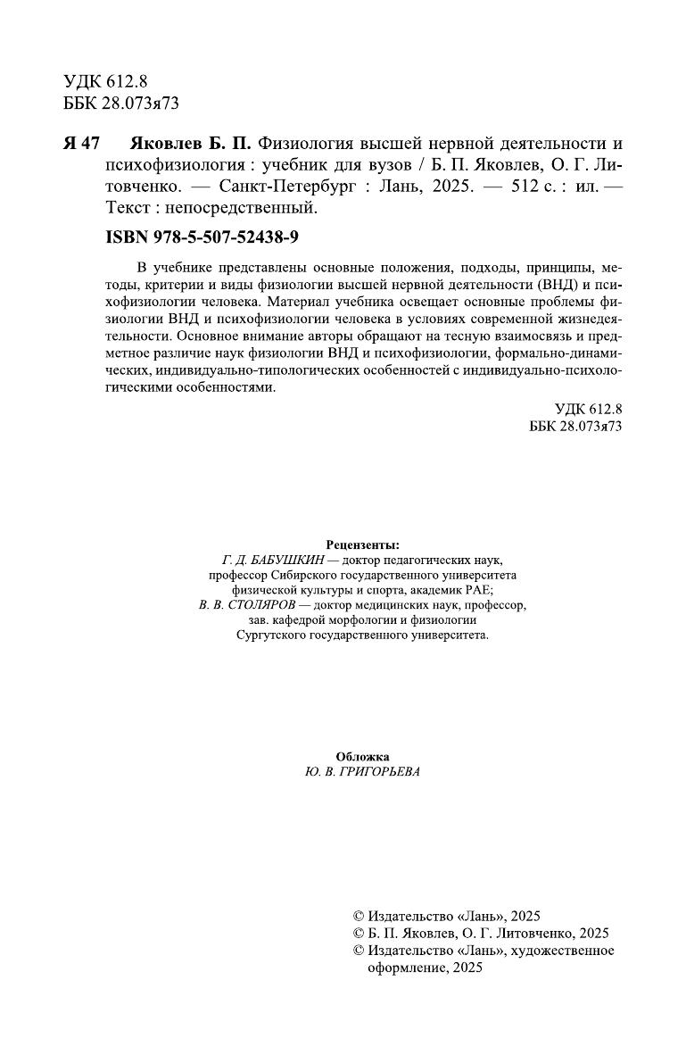 В учебнике представлены основные положения, подходы, принципы, методы, критерии и виды физиологии высшей нервной деятельности (ВНД) и психофизиологии человека. Материал учебника освещает основные проблемы физиологии ВНД и психофизиологии человека в условиях современной жизнедеятельности. Основное внимание авторы обращают на тесную взаимосвязь и предметное различие наук физиологии ВНД и психофизиологии, формально-динамических, индивидуально-типологических особенностей с индивидуально-психологическими особенностями.