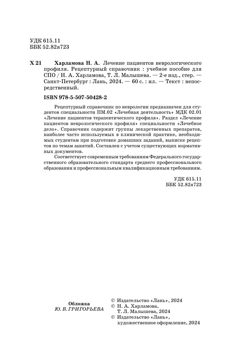 Рецептурный справочник по неврологии предназначен для студентов специальности ПМ.02 «Лечебная деятельность» МДК 02.01 «Лечение пациентов терапевтического профиля». Раздел «Лечение пациентов неврологического профиля» специальности «Лечебное дело». Справочник содержит группы лекарственных препаратов, наиболее часто используемых в клинической практике, необходимых студентам при подготовке домашних заданий, выписке рецептов по темам занятий. Составлен с учетом существующих нормативных документов. Соответствует современным требованиям Федерального государственного образовательного стандарта среднего профессионального образования и профессиональным квалификационным требованиям.