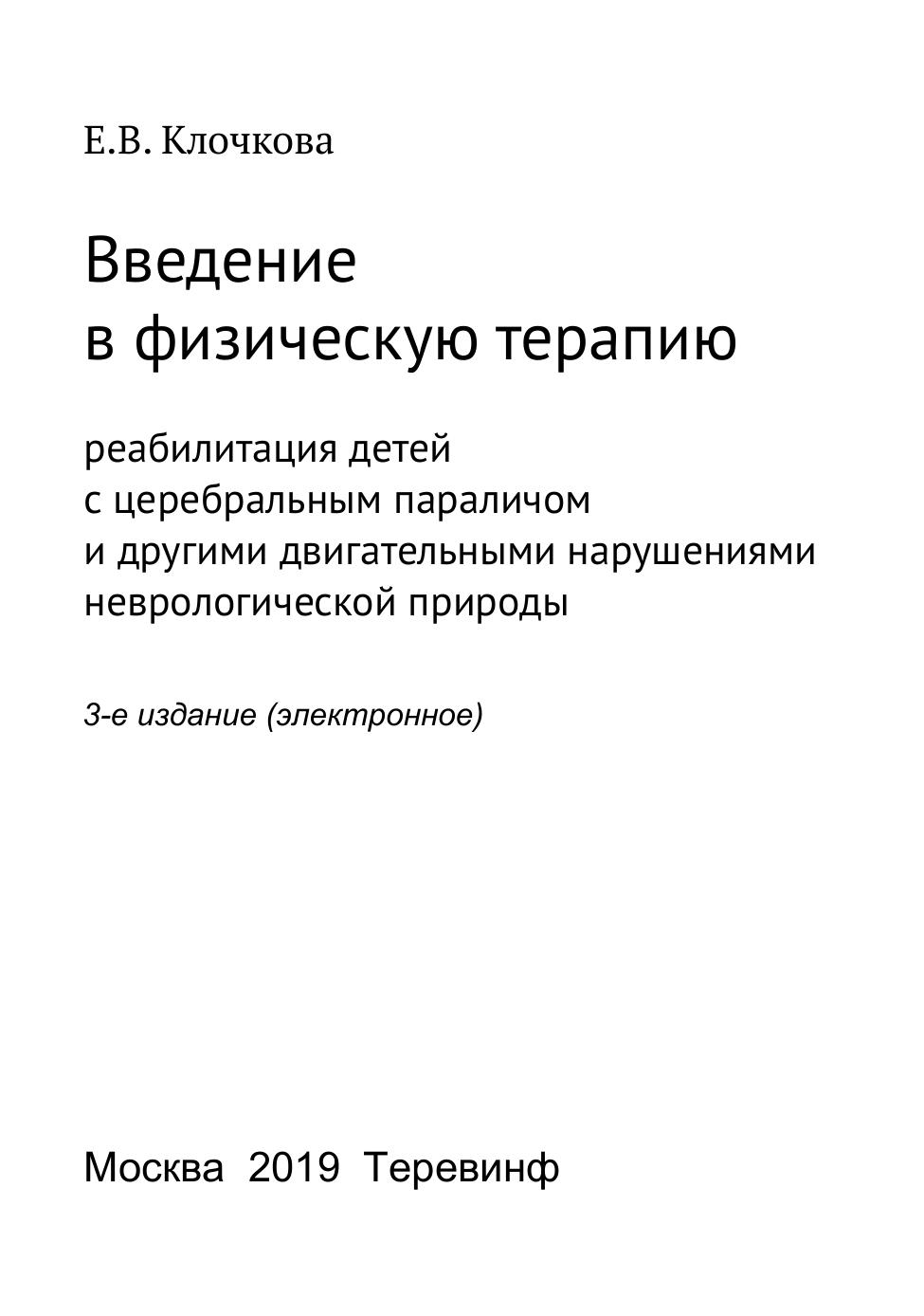Введение в физическую терапию: реабилитация детей с церебральным параличом и другими двигательными нарушениями неврологической природы