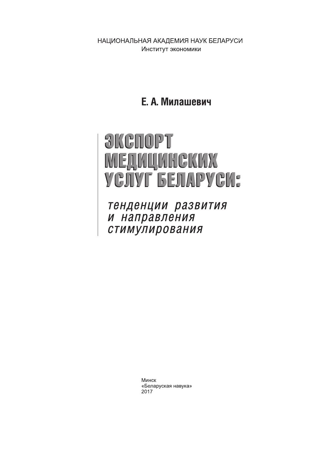 Экспорт медицинских услуг Беларуси: тенденции развития и направления стимулирования