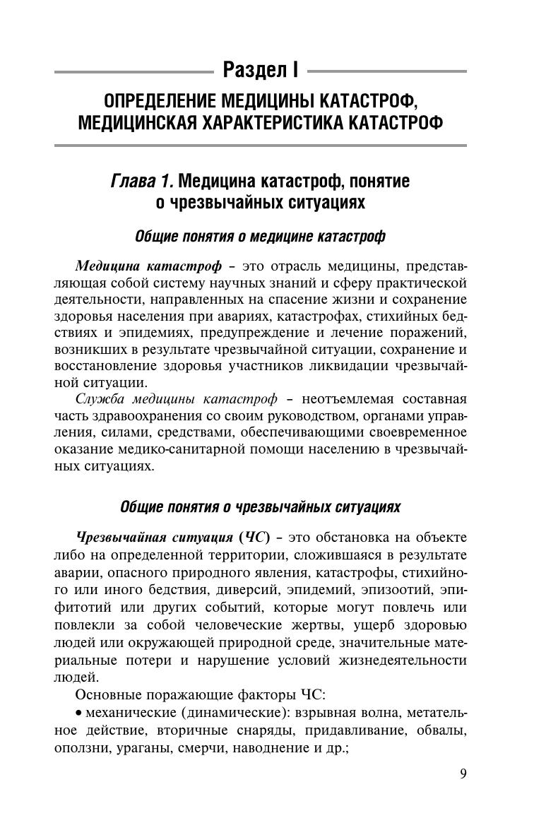 Дана медицинская характеристика катастроф, организация медицинского обеспечения населения в чрезвычайных ситуациях указана последовательность этапов оказания медицинской помощи. Приведены тестовые вопросы и ответы к ним. Для студентов медицинских вузов, слушателей системы последипломного медицинского образования, практикующих врачей.