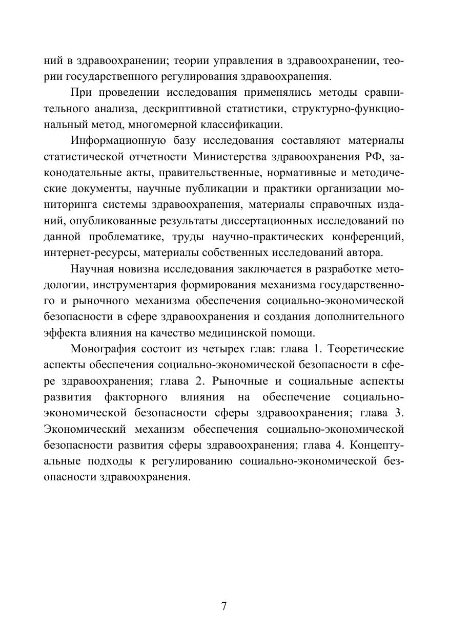 В исследовании развиты теоретические положения, разработаны методические подходы к анализу государственного и рыночного механизмов обеспечения социально-экономической безопасности в сфере здравоохранения.