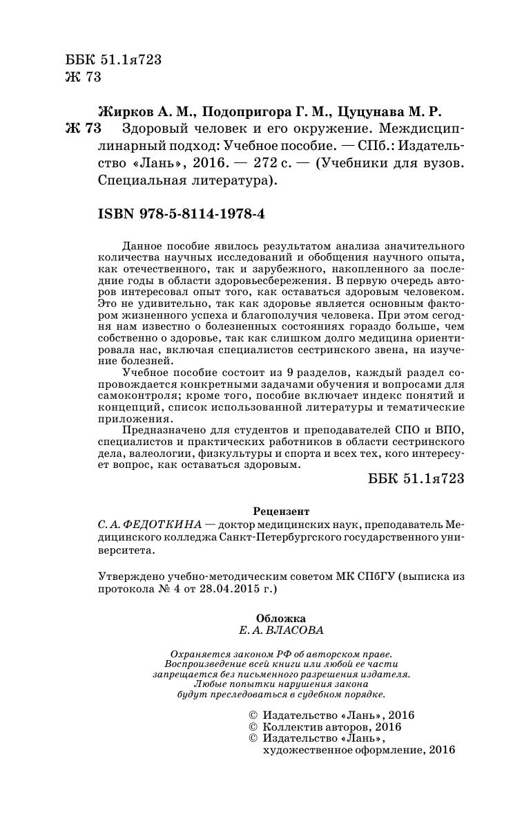 Здоровый человек и его окружение. Междисциплинарный подход: Учебное пособие