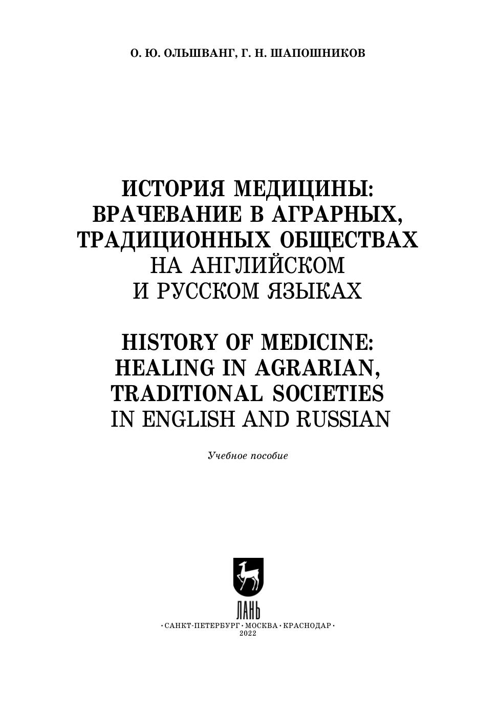 История медицины: врачевание в аграрных, традиционных обществах. На английском и русском языках. History of Medicine: Healing in Agrarian, Traditional Societies. In English and Russian