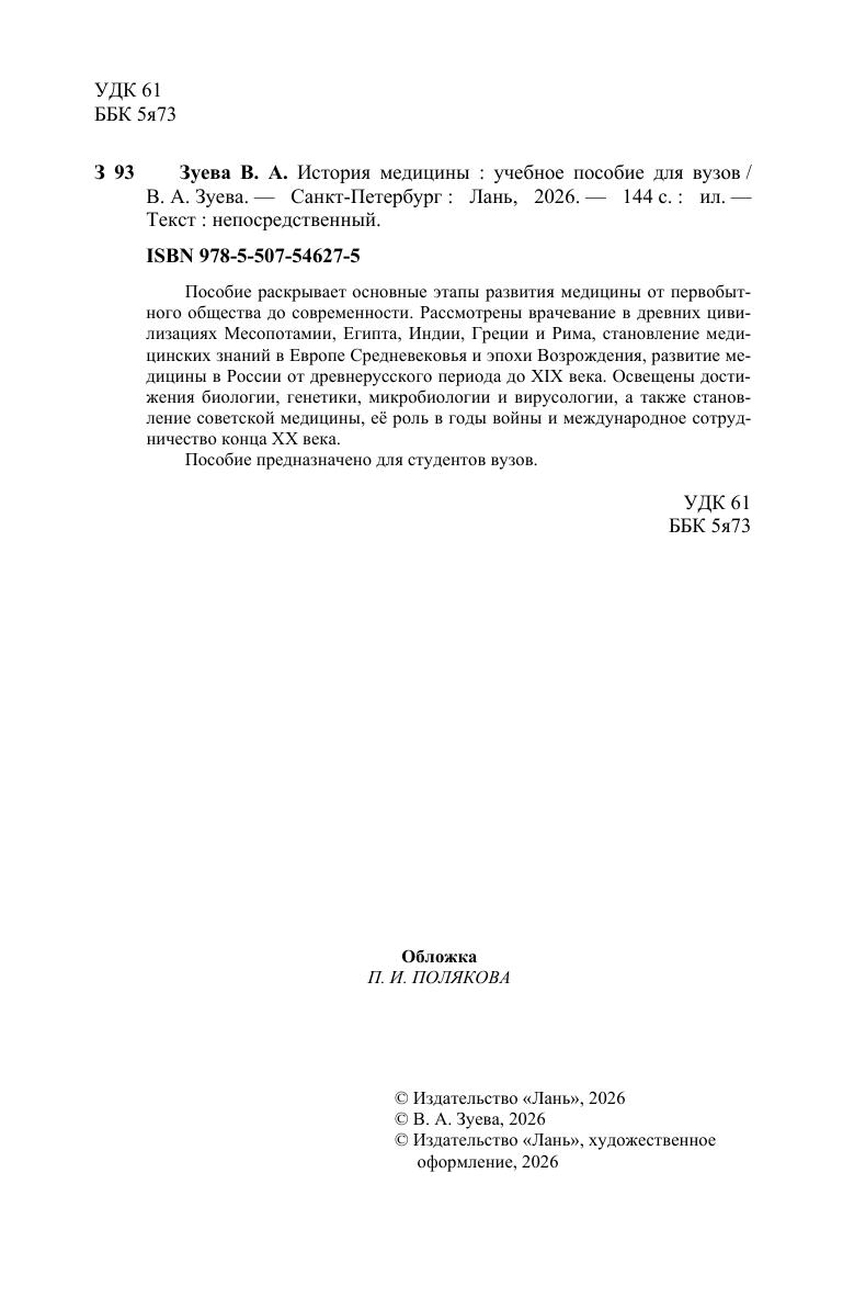 Пособие раскрывает основные этапы развития медицины от первобытного общества до современности. Рассмотрены врачевание в древних цивилизациях Месопотамии, Египта, Индии, Греции и Рима, становление медицинских знаний в Европе Средневековья и эпохи Возрождения, развитие медицины в России от древнерусского периода до XIX века. Освещены достижения биологии, генетики, микробиологии и вирусологии, а также становление советской медицины, её роль в годы войны и международное сотрудничество конца XX века. Пособие предназначено для студентов вузов.