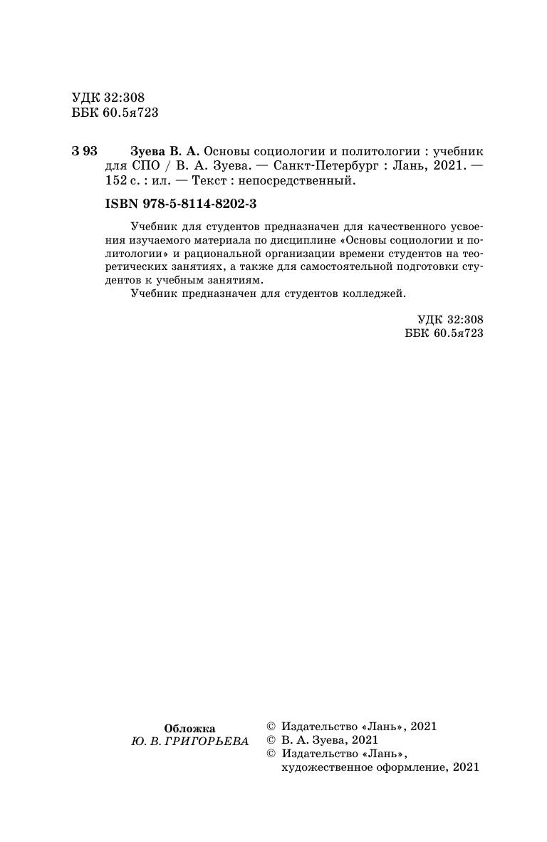Учебник для студентов предназначен для качественного усвоения изучаемого материала по дисциплине «Основы социологии и политологии» и рациональной организации времени студентов на теоретическом занятии, а также для самостоятельной подготовки студентов к учебным занятиям. Учебник предназначен для студентов колледжей.