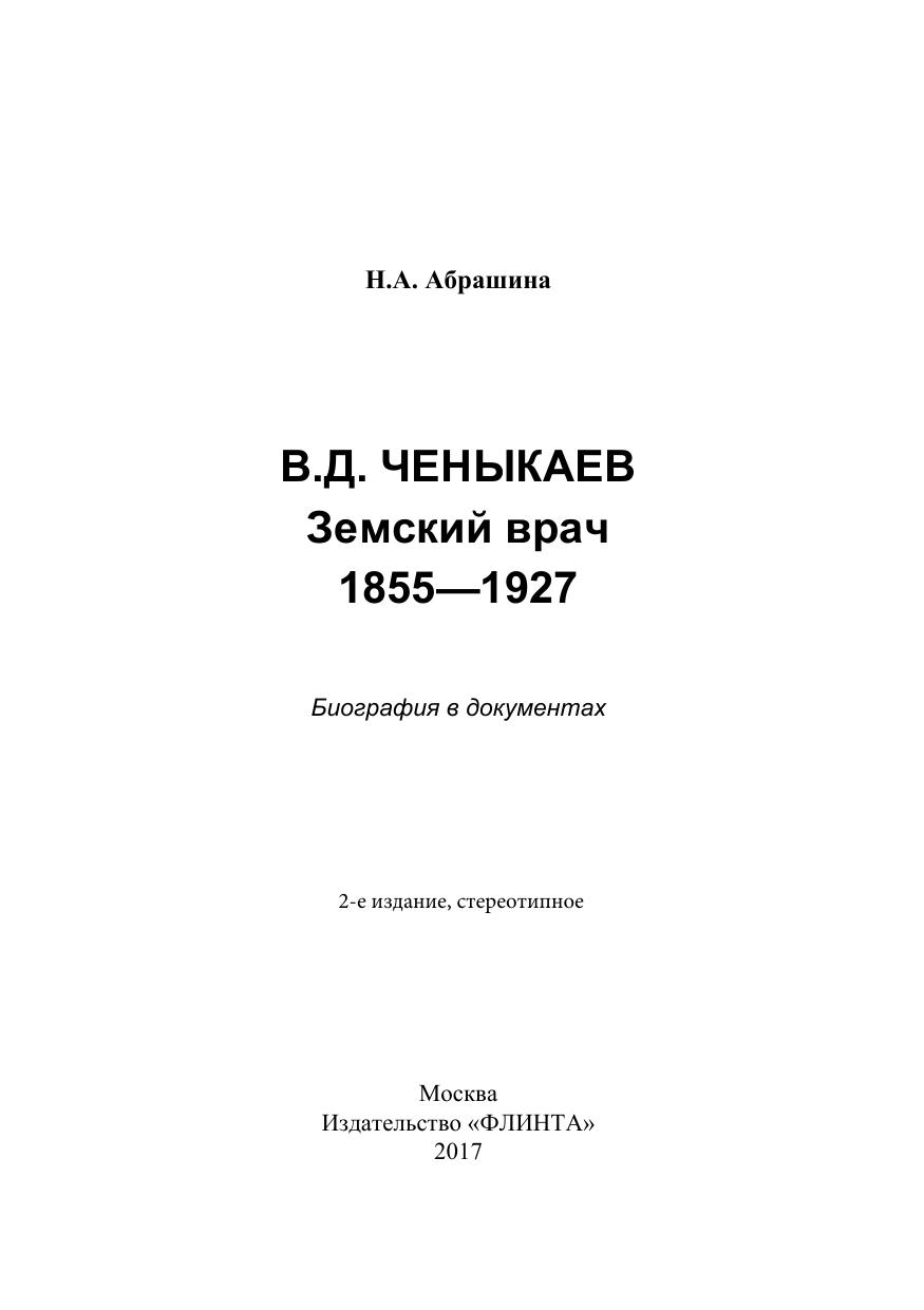 В.Д. Ченыкаев. Земский врач (1855—1927) : биография в документах