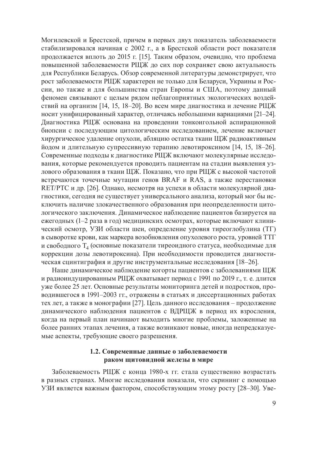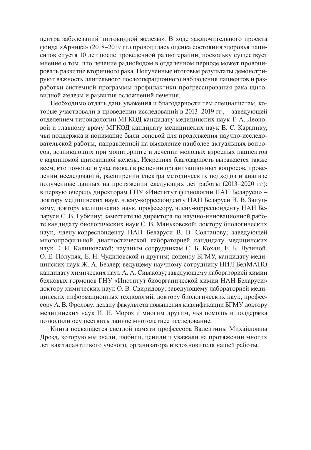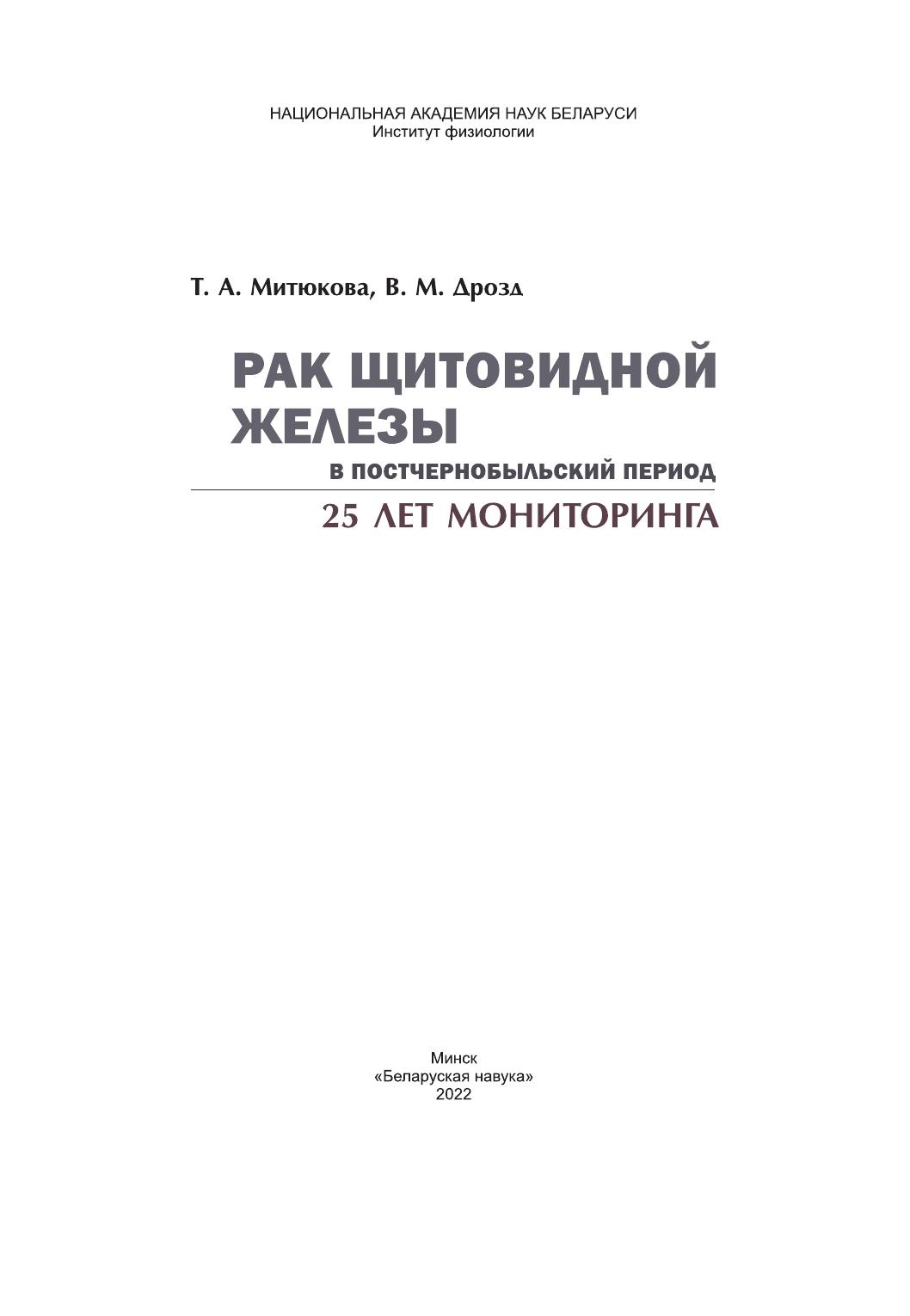 Монография посвящена проблемам мониторинга пациентов с радиоиндуцированным раком щитовидной железы. Проведенная работа опирается на данные предыдущего этапа, посвященного изучению гормонально-метаболических показателей детей и подростков, прооперированных преимущественно в первые 10–15 лет после аварии на ЧАЭС (1991–2002 гг.), и включает последующий период наблюдения вплоть до 2019 г. Рассматриваются вопросы, связанные с трудностями в достижении целевого супрессивного эффекта тироксинотерапии на начальных этапах лечения. Проводится анализ последствий некомпенсированного гипопаратиреоза и многократных курсов радиойодтерапии на состояние репродуктивной системы и основные показатели метаболизма. Выявлены особенности аутоиммунизации, характерные для пациентов с карциномой щитовидной железы, получающих длительное лечение. Проведенные исследования охватывают изучение индивидуальной чувствительности к тироксинотерапии, комплексный анализ состояния сердечно-сосудистой системы, включающий оценку рисков развития тахикардии и артериальной гипертензии; особенности вариабельности сердечного ритма и состояния симпатоадреналовой системы; отдаленные результаты наблюдения лиц, прооперированных по поводу рака щитовидной железы, и оценку рисков развития вторичного рака (2018–2019 гг.).