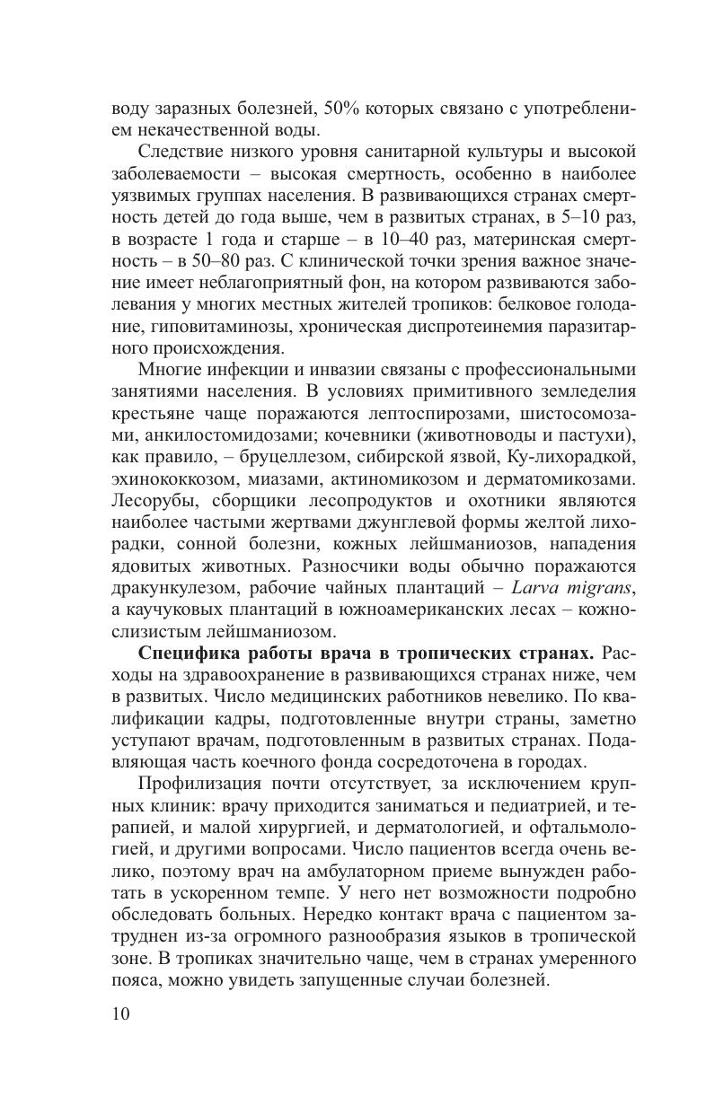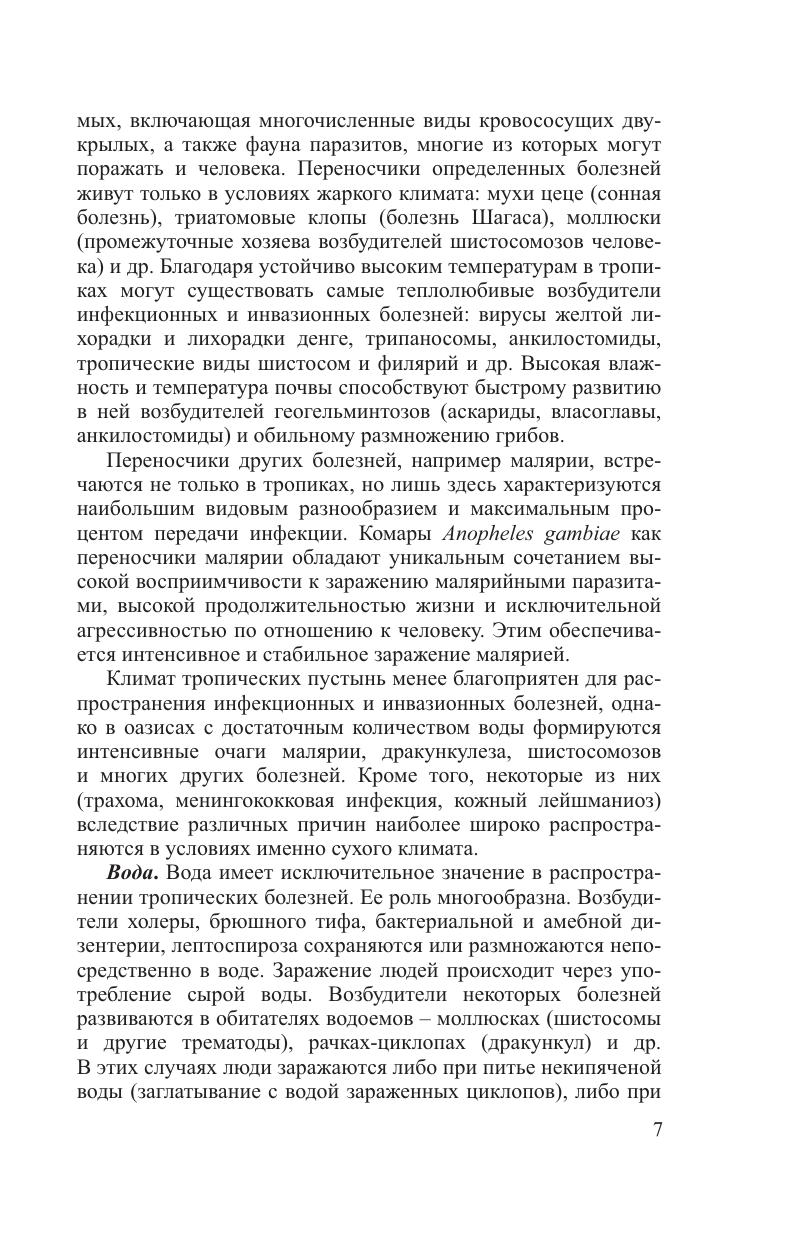 Изложены основные сведения по этиологии, эпидемиологии, патогенезу, клинике, диагностике, лечению и профилактике основных инфекционных и паразитарных болезней тропиков. Приведены современные методы диагностики и лечения. Большое внимание уделяется влиянию факторов окружающей среды и специфике работы врача в тропических странах, отражены особенности патологии коренного населения тропиков и течения заболеваний у приезжих лиц. Для студентов медицинских вузов по специальності "Лечебное дело". Будет полезно студентам-иностранцам, изучающим тропические болезни, практикующим врачам.