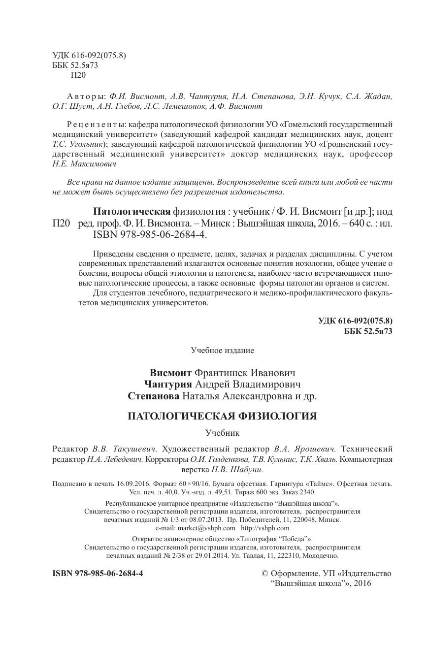 Приведены сведения о предмете, целях, задачах и разделах дисциплины. С учетом современных представлений излагаются основные понятия нозологии, общее учение о болезни, вопросы общей этиологии и патогенеза, наиболее часто встречающиеся типовые патологические процессы, а также основные формы патологии органов и систем. Для студентов лечебного, педиатрического и медико-профилактического факультетов медицинских университетов.