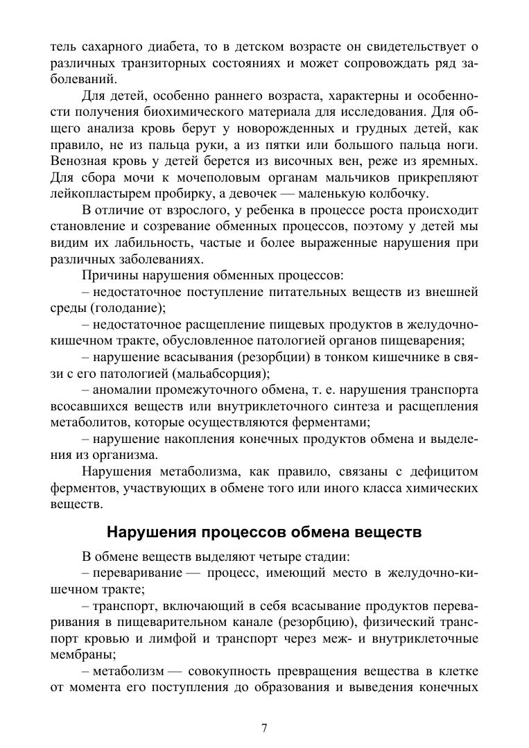 В пособии рассматриваются биохимические особенности метаболизма у детей разных возрастных групп. Также приведены варианты патологии обмена веществ у детей. Для проверки усвоения материал в конце пособия приведены тестовые задания. Настоящее пособие составлено в соответствии с требованиями ФГОС3+, рекомендациями ведущих вузов страны и рабочей программой по биохимии по специальности «Педиатрия».
