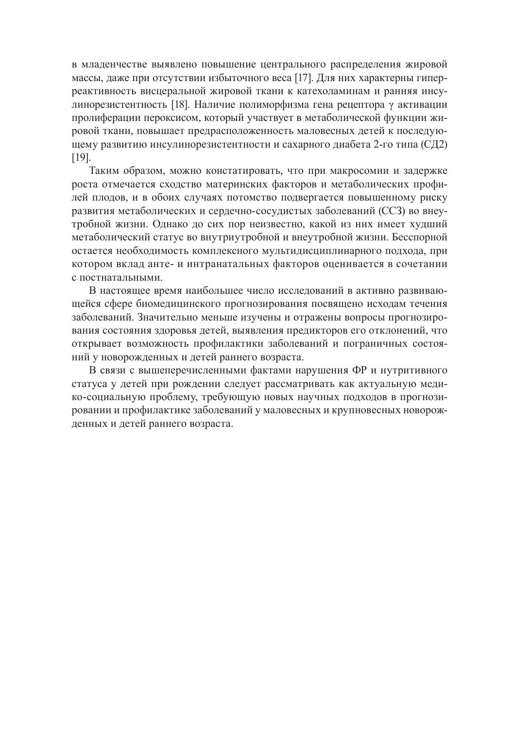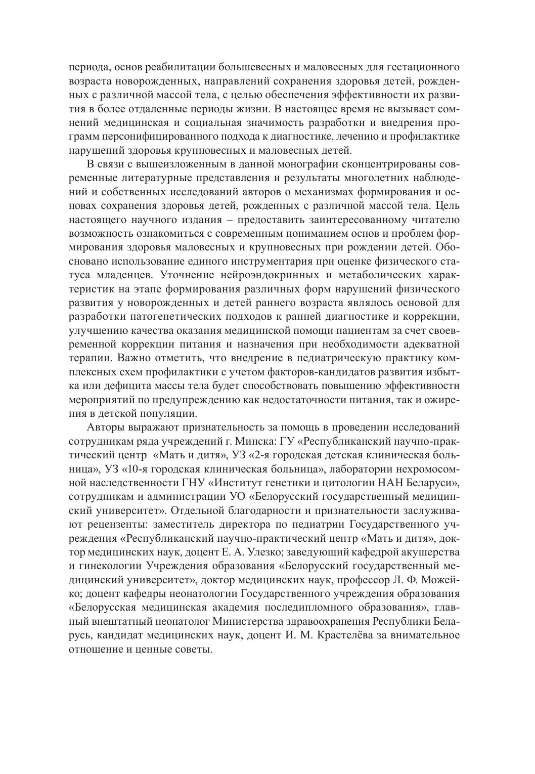 Монография посвящена проблеме сохранения здоровья детей, рожденных с крупной и низкой массой, и актуальным вопросам изучения основ и перспектив их роста и развития. Отражены современные представления и результаты многолетних исследований авторов о причинах и факторах риска рождения детей с отклонениями массы тела, состоянии здоровья крупновесных и маловесных новорожденных в период адаптации и в последующие годы жизни. Комплексно изучены факторы депонирования и мобилизации энергетических субстратов, механизмы, определяющие формирование избыточной массы тела и ожирения, представлена программа медицинской профилактики нарушений физического развития и метаболического дисбаланса.