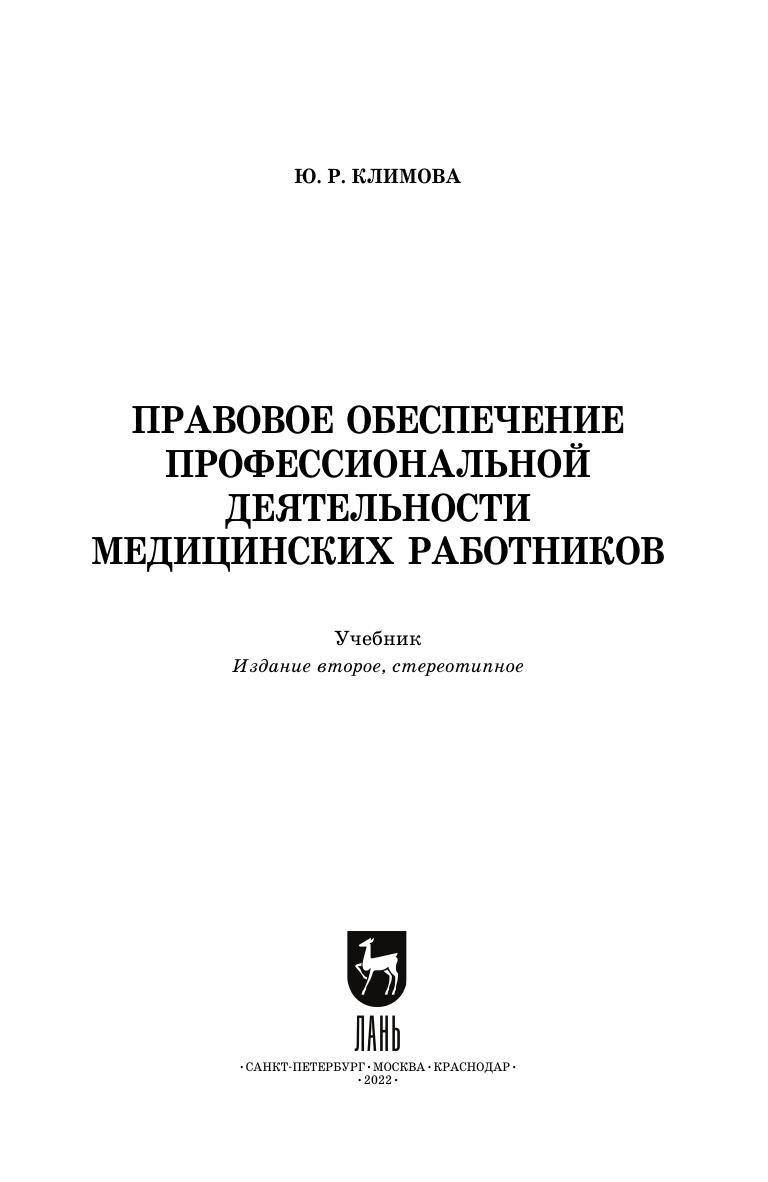 Правовое обеспечение профессиональной деятельности медицинских работников