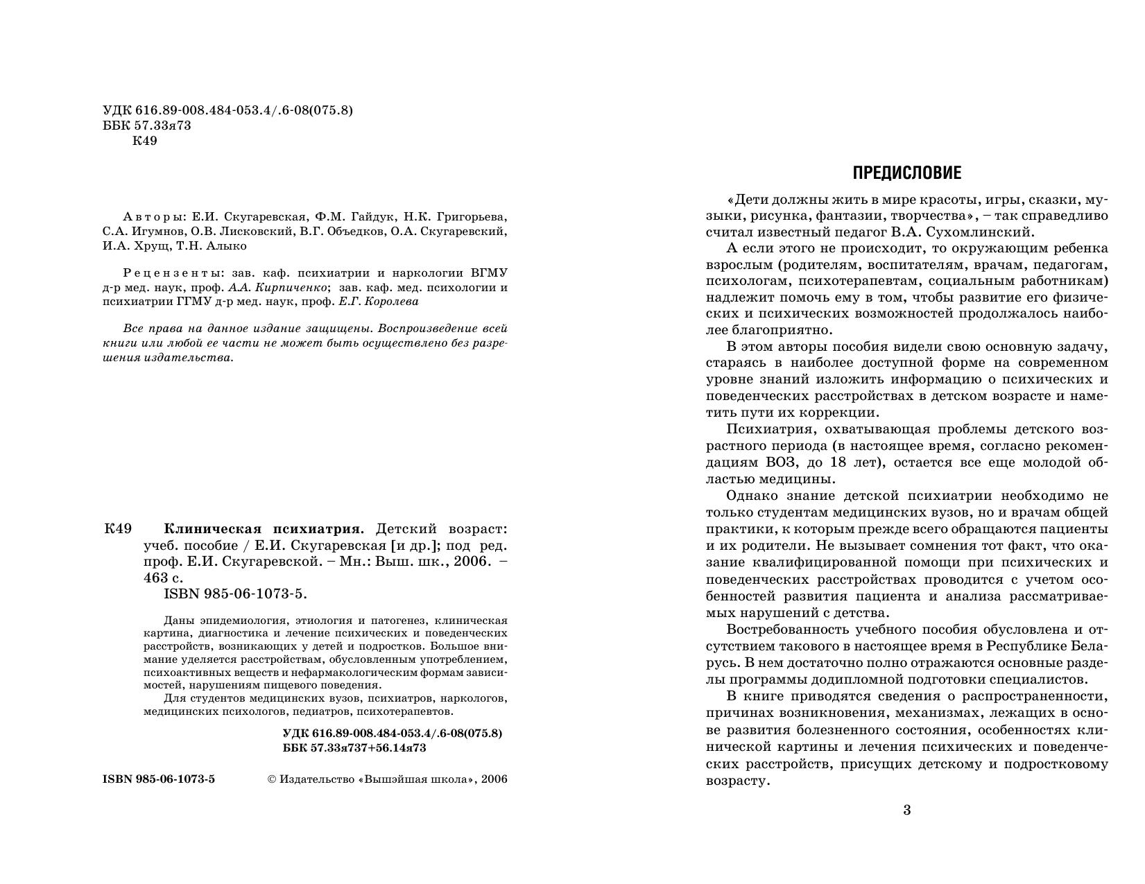 Даны эпидемиология, этиология и патогенез, клиническая картина, диагностика и лечение психических и поведенческих расстройств, возникающих у детей и подростков. Большое внимание уделяется расстройствам, обусловленным употреблением психоактивных веществ и нефармакологическим формам зависимостей, нарушениям пищевого поведения. Для студентов медицинских вузов, психиатров, наркологов, медицинских психологов, педиатров, психотерапевтов.