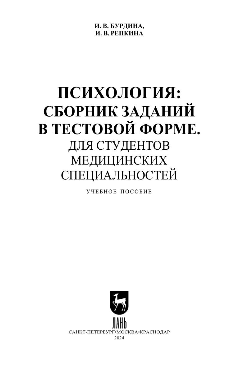 Психология: сборник заданий в тестовой форме. Для студентов медицинских специальностей