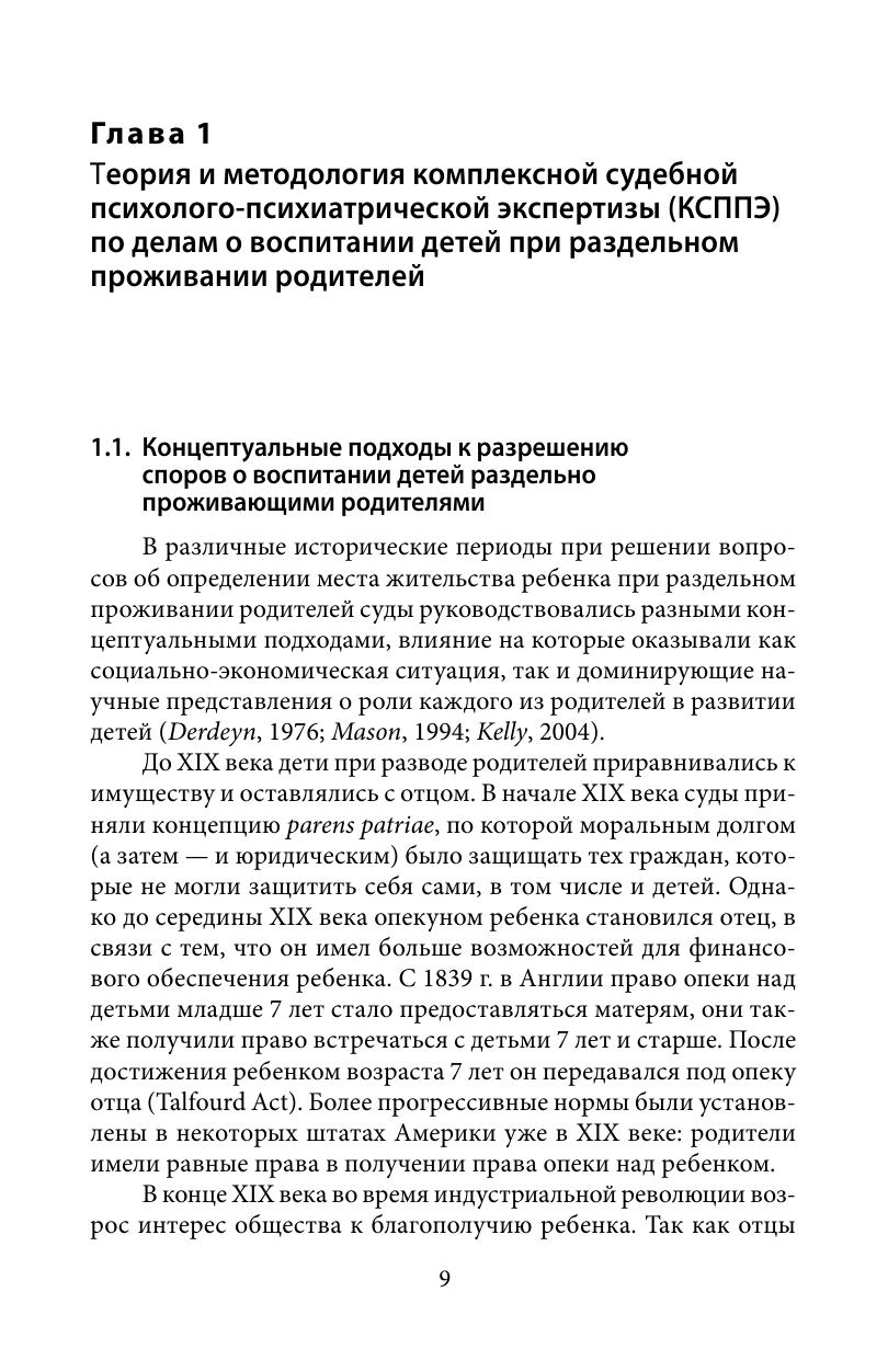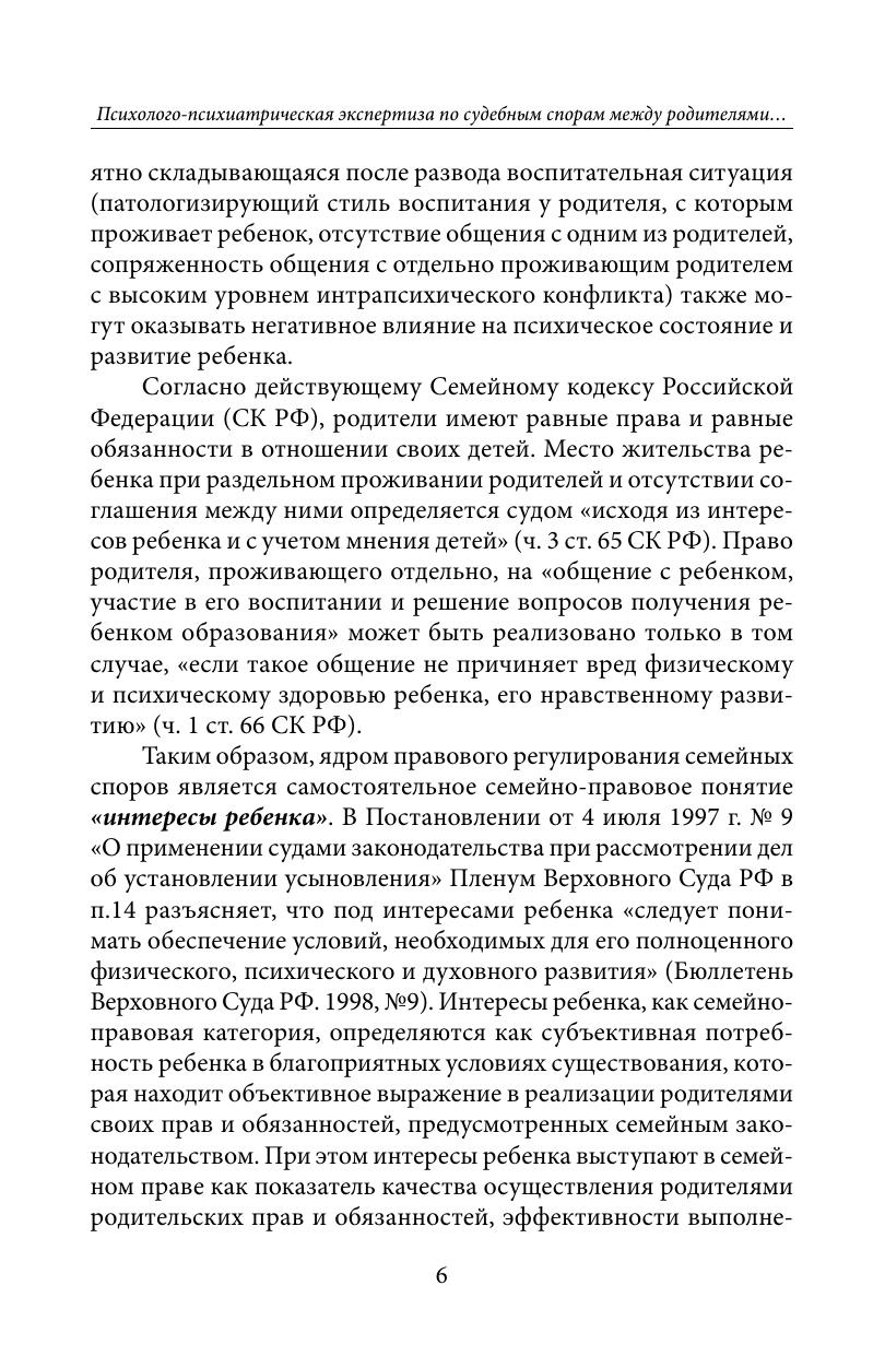 В книге рассматриваются теоретические и методологические проблемы комплексной судебной психолого-психиатрической экспертизы по гражданским делам о воспитании детей при раздельном проживании родителей. Освещаются принципы, этапы и методы судебно-экспертного исследования. Особое внимание уделяется анализу социально-психологических особенностей высококонфликтных семей, влияния разводов родителей на психическое состояние и развитие ребенка. Выделяются клинико-психологические факторы, имеющие экспертное значение при решении вопросов о месте жительства ребенка и порядке встреч отдельно проживающего родителя с ребенком. Анализируются типичные ошибки в заключениях специалистов и экспертов.