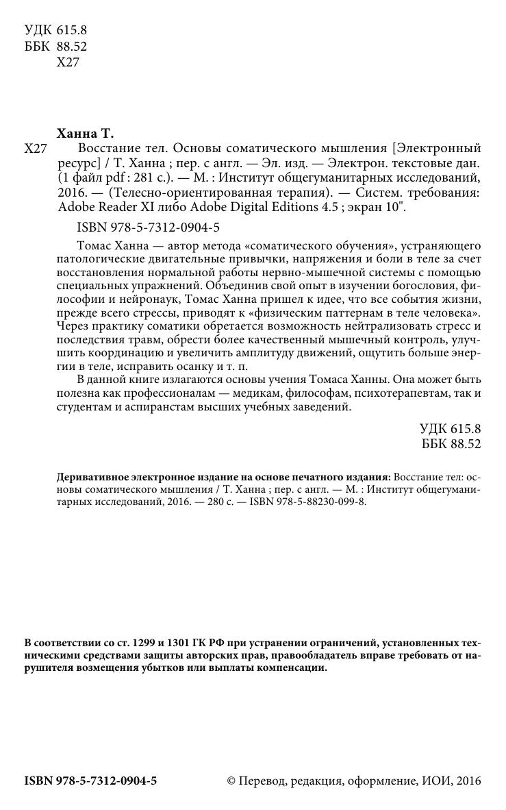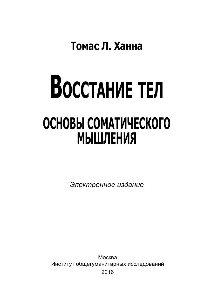 В данной книге излагаются основы учения Томаса Ханны. Она может быть полезна как профессионалам — медикам, философам, психотерапевтам, так и студентам и аспиранстам высших учебных заведений.